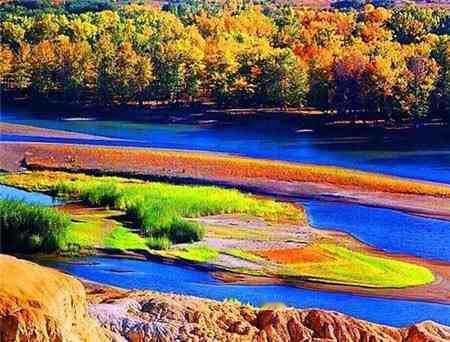 新疆·五彩滩 一河两岸,南北各异。一边是绿草如茵、山花烂漫、牛羊悠