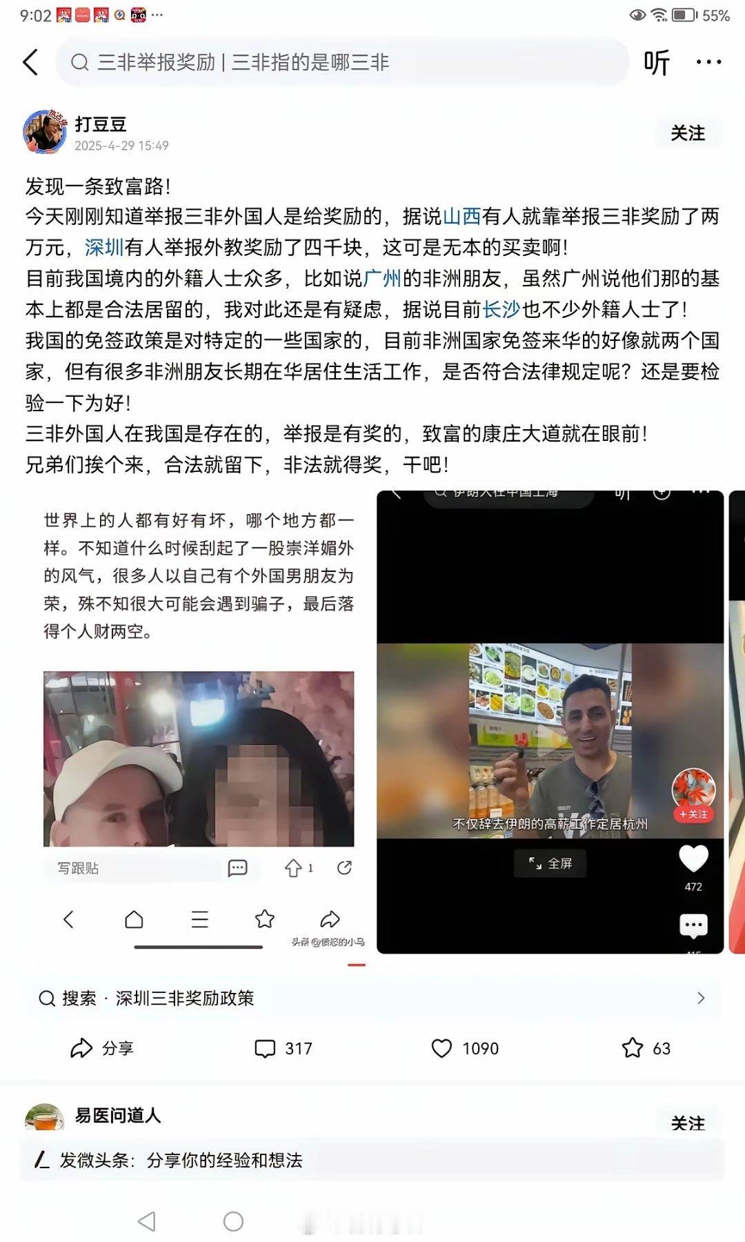 因为外国人大量进入中国又催生了新的职业,紧盯外国人对三非外国人进行举报可以获取相