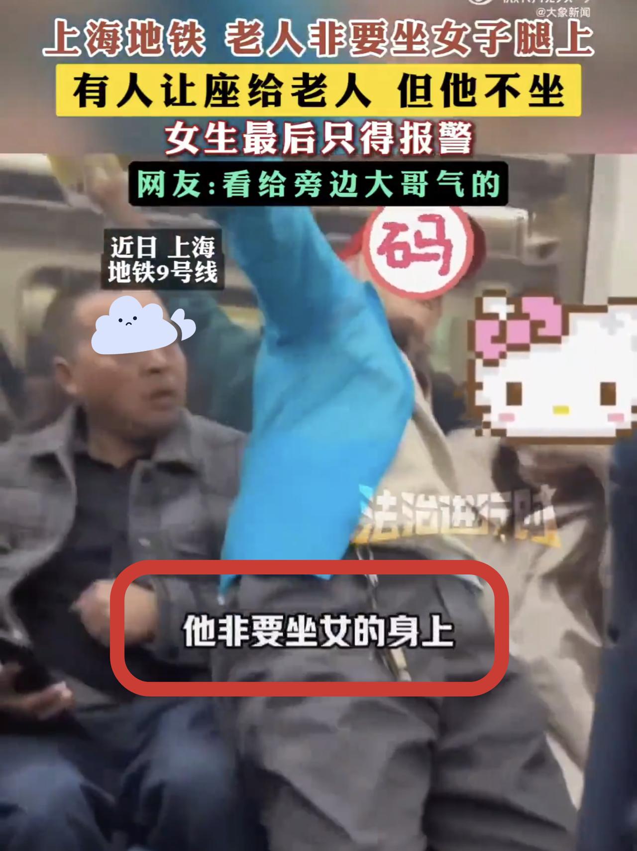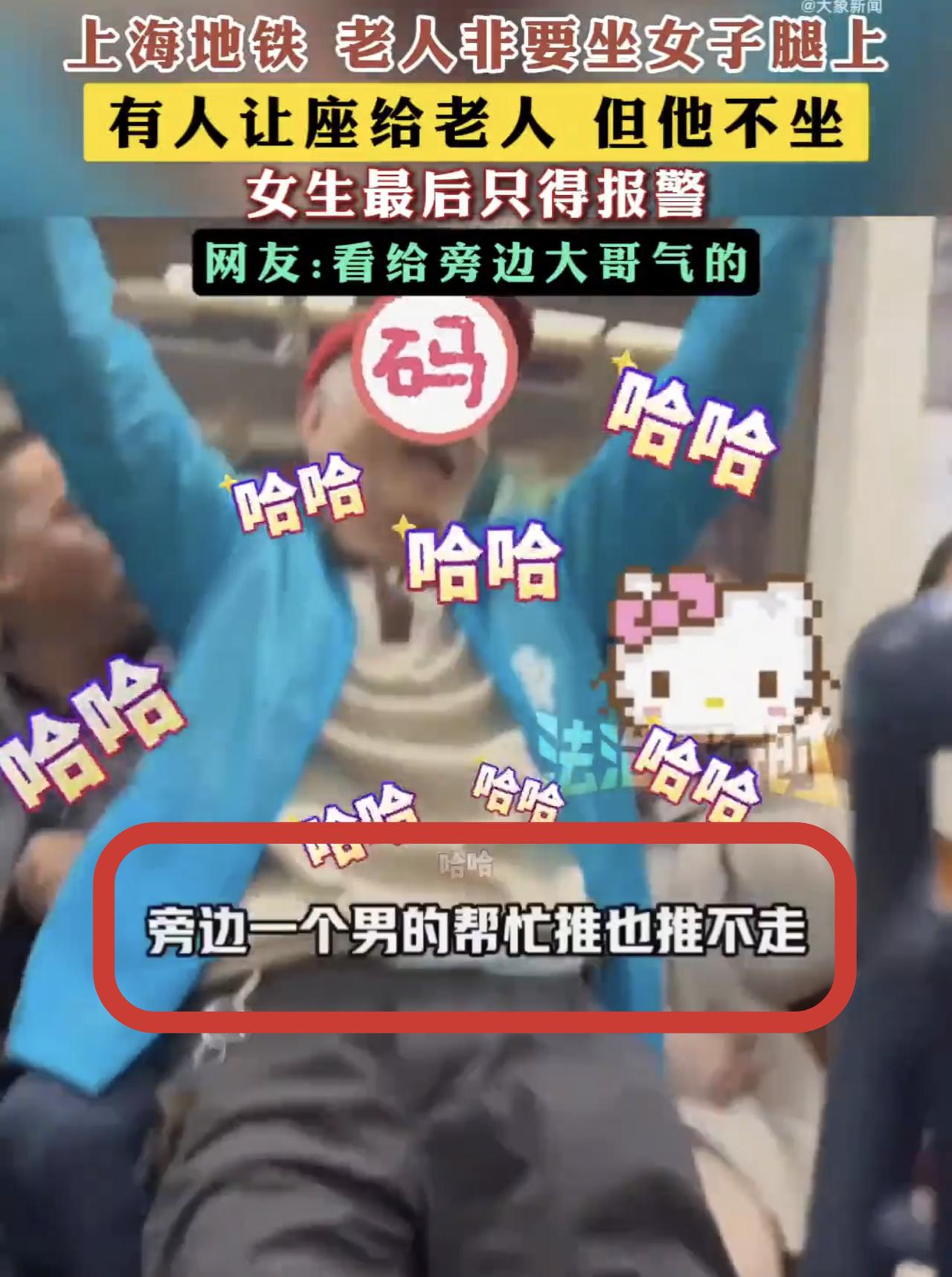 这老头太不像话,真是坏到家了[灵光一闪]!上海地铁这老头,故意坐女生大腿,这事看的让人血压高[6]。这个穿蓝衣的大爷,明明旁边有空座位,他就往女乘客那边挤过去,一下就坐到人家腿上。 他那沾沾自喜的样子,真是让人活久见[酷拽]!女生被这老头压得动不了,用力推都推不开。旁边一个大哥去帮忙,也拽不动这个坏老头。更可气的是,这蓝衣大爷,自始至终一点歉意都没有[笑哭]。 他还在那笑嘻嘻的,根本不听周围人劝说。他仗着自己年纪大耍赖,真叫人又气又无奈[黑线]!最后女生选择报警求助,这做就对了[赞]!年纪大不是乱来的理由,你对这个老头咋看?