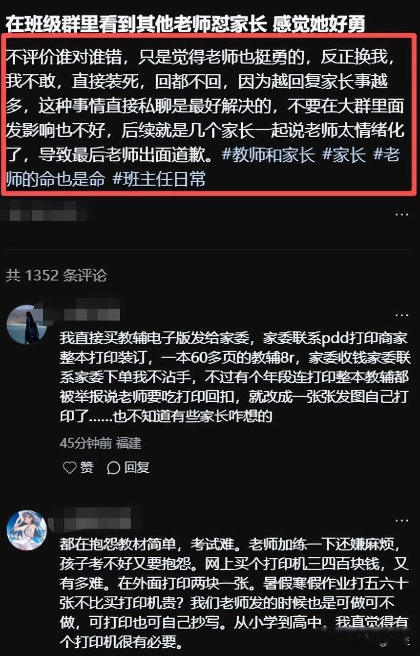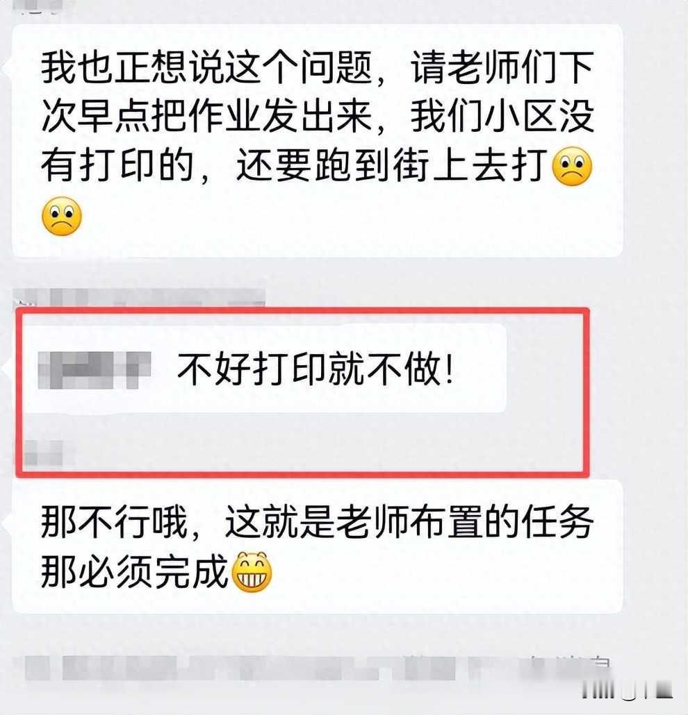 作业没了纸,家长急了,老师凉了 这事说起来挺简单,广东一位家长觉得学校打印作业太麻烦,就向教育部门举报这件事,理由是加重学生负担,教育部门对此感到紧张,干脆让全国很多地方都停掉纸质作业,连试卷也不再印刷,全部改成发送电子版本,没有人正式下发文件,只是下面的人自己过度反应,采取了一刀切的做法。 老师这边确实头疼,不敢安排纸质作业,担心被家长举报,只能每天在班级群里发电子版题目,愿意打印的学生就自己打印,但题目格式常常混乱,发送时间也没个准数,有时大清早发,有时深夜才发,老师还得费心研究怎么上传文件、修改内容、收集作业,忙得够呛,却得不到理解。 家长遇到的情况更麻烦,家里没有打印机的那些父母,每天都要带着孩子去打印店跑一趟,来回路上得花半小时到一小时,不管刮风下雨都得去,有些家长早上赶着上班,孩子放学又晚,等印完资料天都黑了,本来是想让孩子轻松点,结果反而添了更多事,搭进去了路费和时间成本,谁也没料到会变成这样。 孩子在这方面最吃亏,写字练得少,手就越来越生疏,低年级本该好好练字、把卷面写工整,现在却全靠手机和平板来应付,屏幕一闪,孩子的注意力就跑散了,作业完成率低,错题也多了起来,老师没空一个个盯着,家长又不太会辅导,结果学习效果打了折扣,这不是在减负,这是放任不管。 那位提出意见的家长,对教育这件事理解得不够深入,在网上读到一些文章后,就认为减少打印作业等于减轻孩子的负担,但写字、抄写题目、订正错误这些练习,其实对孩子大脑发育很有帮助,他们可能没意识到重要性,只想着尽量省事,老师本来在想办法帮助学生补上不足,反而被误解为偷懒,这种误会确实有点深。 现在老师们都感到担心,因为一旦有人举报,评优机会就没了,职称晋升也受影响,有些老师干脆放手不管,学生说什么都不理会,广东有位老师直接回应“不做就不做”,这话听着冷淡,其实是长久压抑的结果,不是老师不愿意管学生,而是他们不敢去管,制度上没有保障老师的权益,随便一个人站出来指责,就能让老师陷入麻烦。 还有个问题大家都没提到,把打印任务推给家庭,实际上是把钱和资源分开处理,条件好的家庭买台打印机,花六七百块钱不算什么,经济困难的家庭只能去外面打印,每次花几块,一个月下来也要几十块,这笔开销看起来不大,但对打工家庭和流动儿童来说,却是额外的负担,城市中产可能觉得“自己解决就行”,但现实情况是,并不是每个家庭都有这样的条件。 家校关系变得像一场拉锯战,原本应该携手合作,现在却互相防备,新加入的家长不了解之前的情况,看到老师没有主动联系,就觉得老师态度冷淡,其实老师也是被现实情况所迫,类似的事情各地都在发生,一个地方出了问题,其他学校也跟着暂停活动,越是这样停下来,大家越不敢轻举妄动,结果陷入了恶性循环。 谁也没料到,一次举报竟然打乱了整个小学的作业安排,作业本不见了,老师的责任没有减轻,家长的压力反而更大了,大家原本以为这是进步,结果却成了退步,教育这件事不能只听人说为了孩子,得看实际带来的效果。