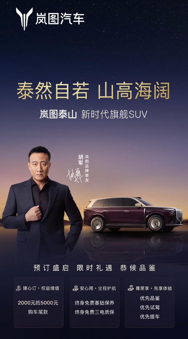 “影帝”胡军站台!“国产库里南”岚图泰山开启预定 9月26日,岚图新时代旗舰S