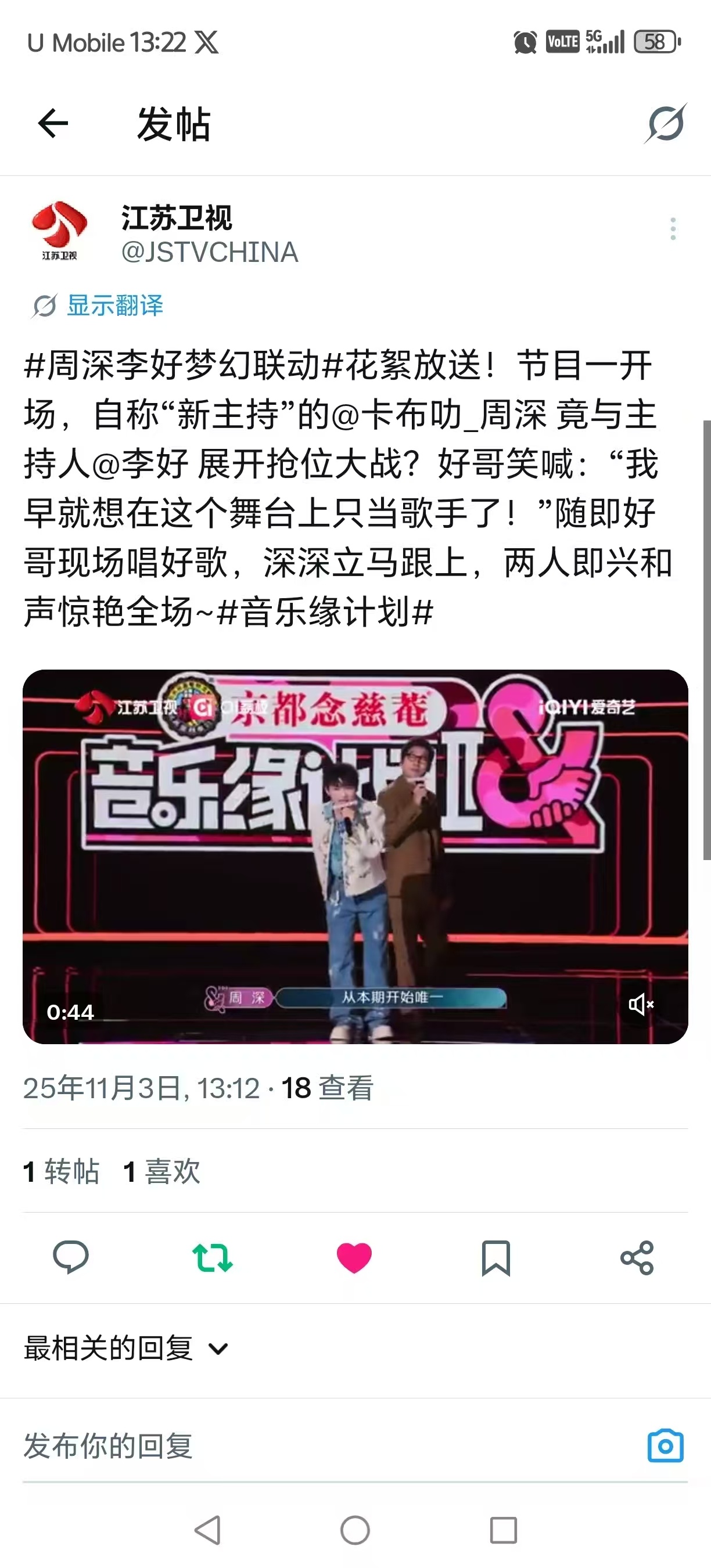 周深[超话]📣11.3缘计划舞台物料📣【江苏卫视】海外平台更新了深