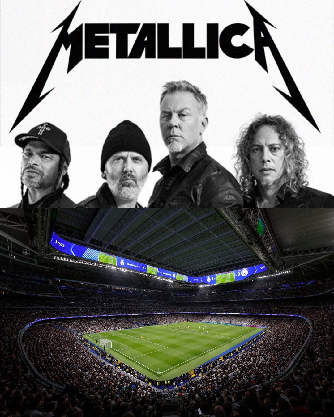 马卡报:皇马在伯纳乌每场比赛前宣布首发阵容时,将使用Metallica的《Enter Sandman》作为新的主题曲。