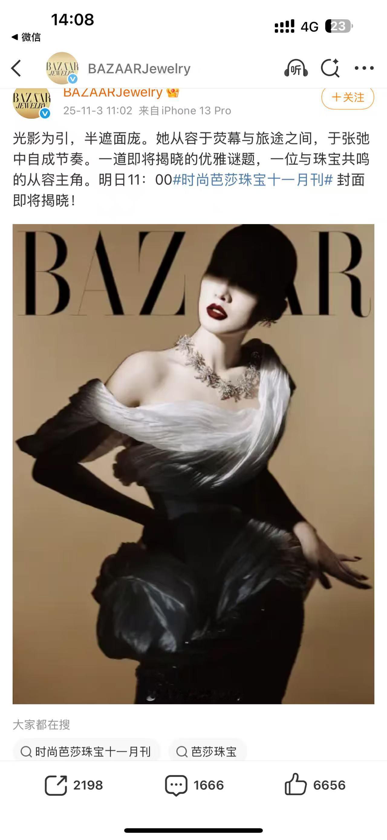 李沁时尚芭莎珠宝十一月刊李沁好美,这次芭莎珠宝感觉很惊艳,让人眼前一亮,很有东方大气美,李沁的杂志表现力一直很赞,之前的很多杂志封面都让人惊艳,李沁的气质绝绝子!