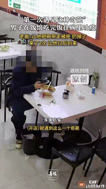 浙江嘉兴一家餐馆内,一名男子吃完饭后,居然直接在碗里吐痰,这一幕被老板看见后,直接让他下次不要再来了,并让他把碗拿走,男子不愿意拿走碗,老板就果断扔掉了,对此老板表示,这位顾客是第二次来了,开店这么久,第一次遇到这么没素质的客人,不想再招待他了,网友看完这段视频,都觉得这名男子真是太奇葩了,一般饭店的碗都是公用的,相信这是众所皆知的事情,而他在自己吃完饭后,却朝着碗里吐痰,简直太不文明了,即便碗可以洗干净,可这种现象让人看着就不舒服,可见他的个人素质确实有待提升,另外老板的做法非常正确,对于这种素质堪忧的顾客,确实没必要再招待了,否则每次都要损失一个碗,并且还破坏了店里的声誉,实在是不划算,对于不文明的现象,每个人都应该及时制止。大家怎么看呢?