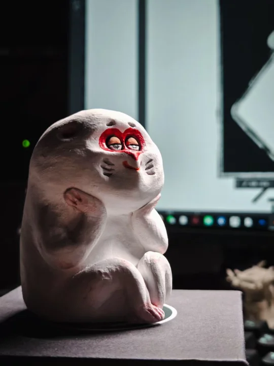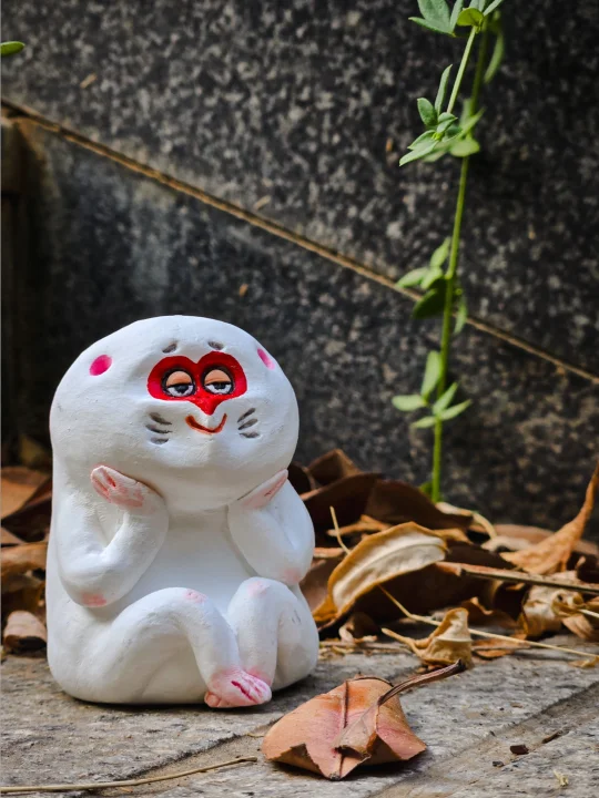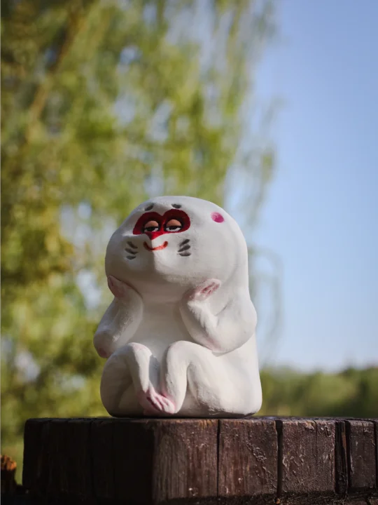 只想把他带回家!! 这可太符合我的精神状态了! 微开的眼睛,上扬的嘴角 好像在演追剧时的我 脸还是个爱心形状 手工做的真好 强烈建议来个人把他带回去 放在桌面上 每天看着心情都是愉悦的