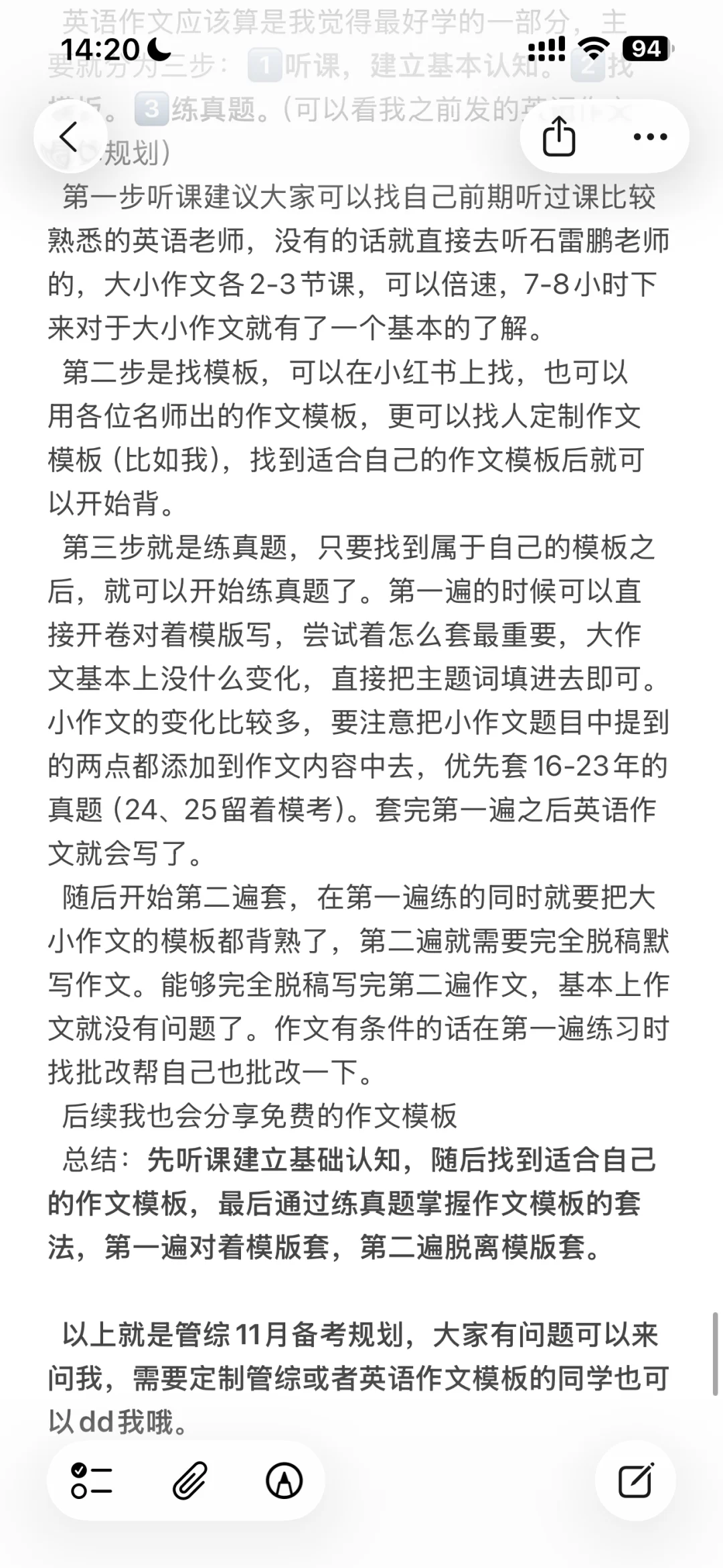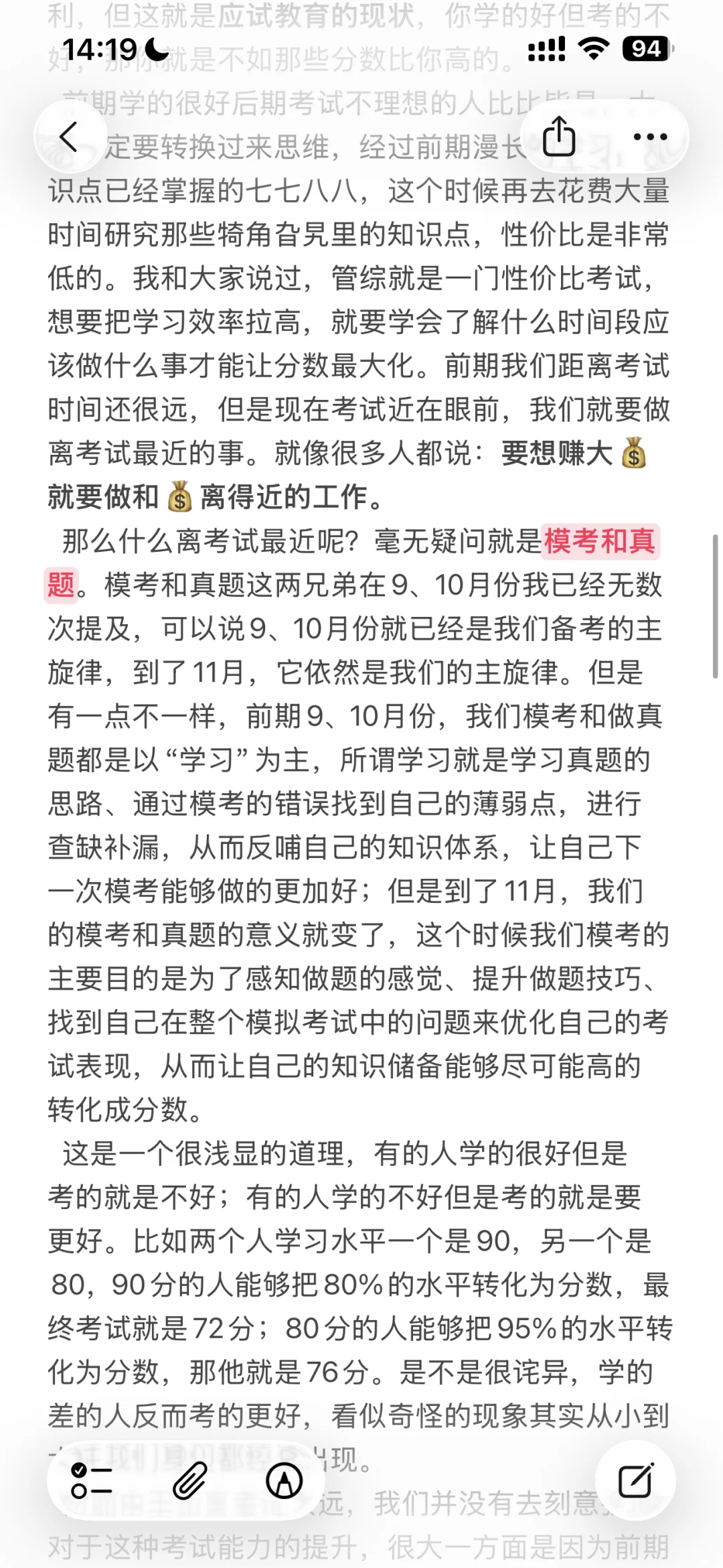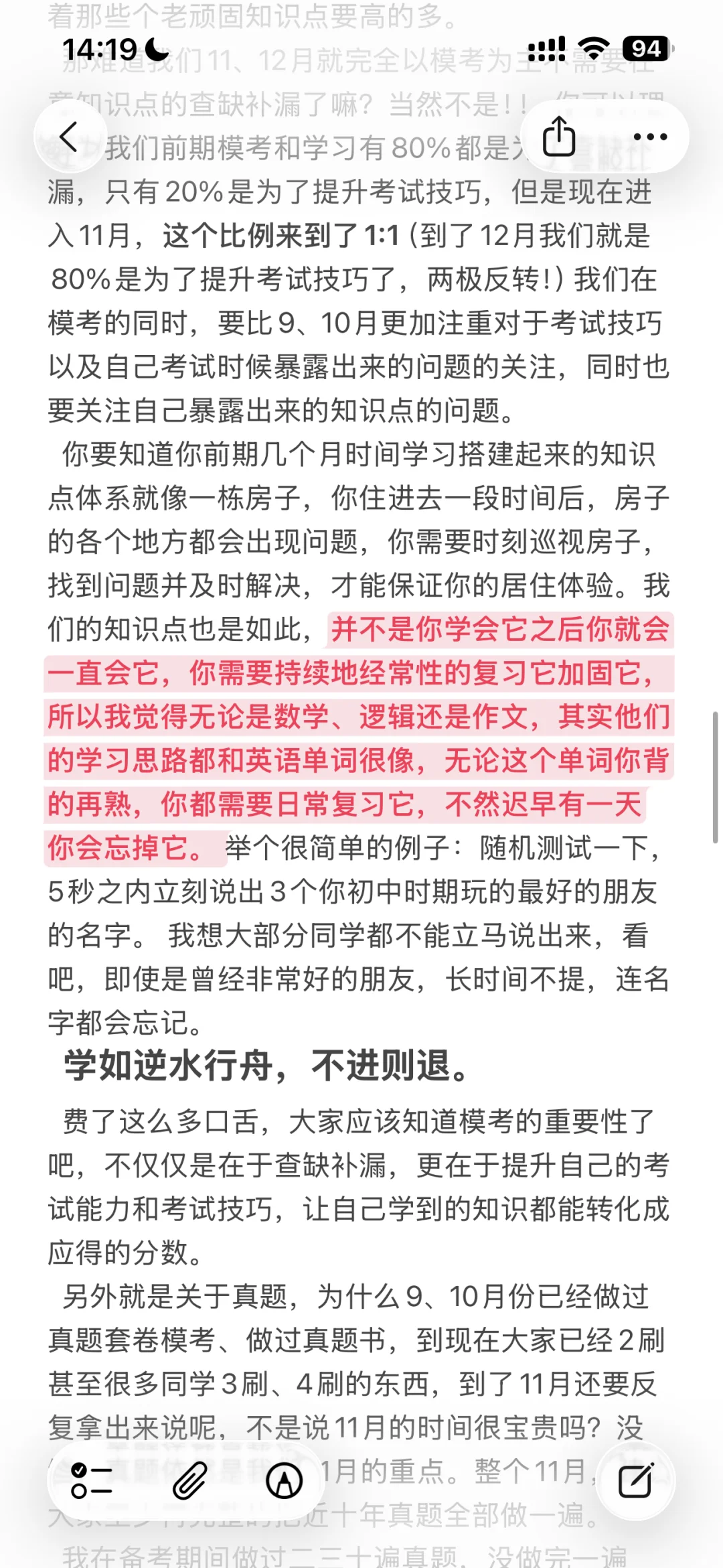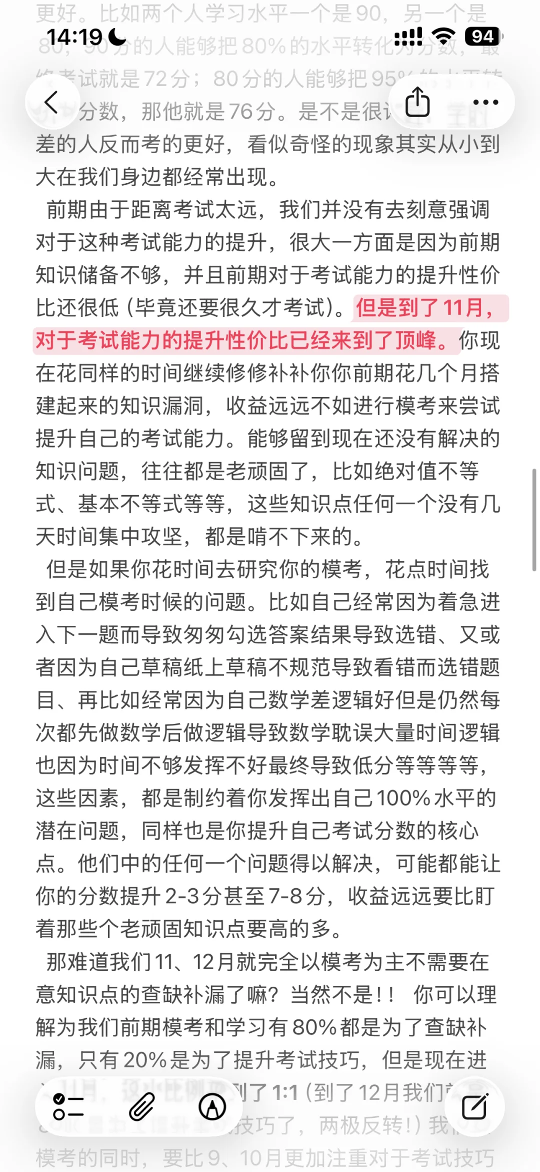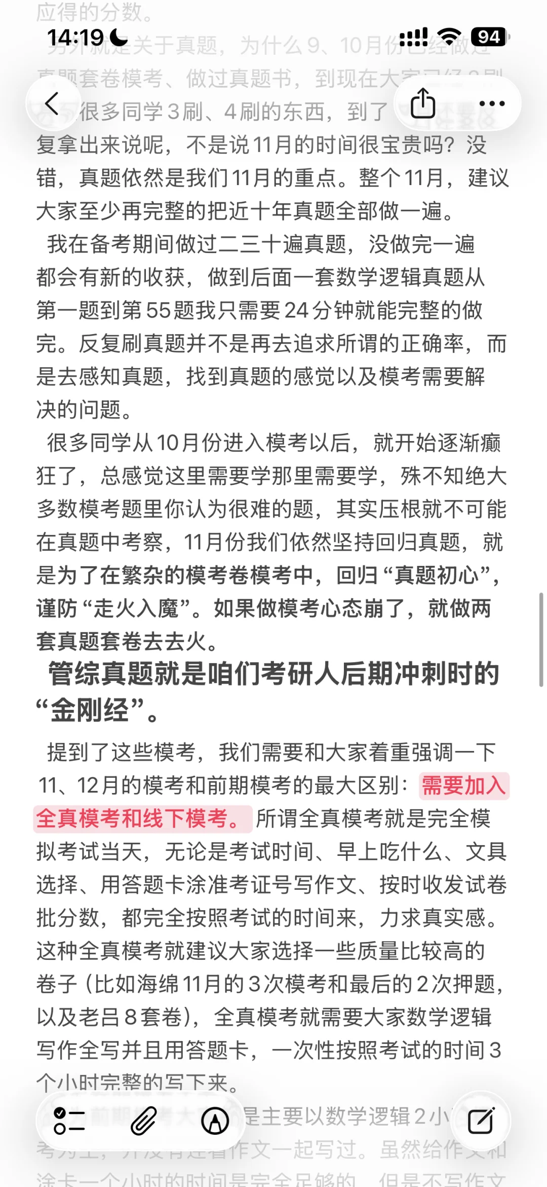 11月备考规划速览:(一句话总结:以提分为目标,模考是主线,压箱底课是关键,真题是根基。数学逻辑提速度,作文英语稳发挥)