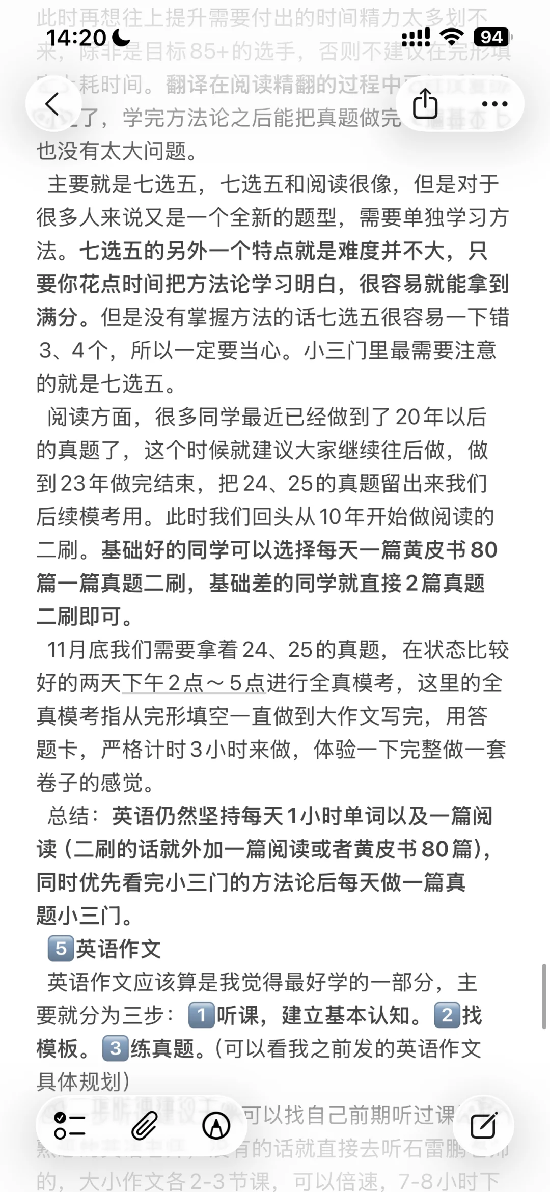 每周至少两次模考,目标高的同学建议两天一次。模考重在提升“考试能力”而非刷知识。