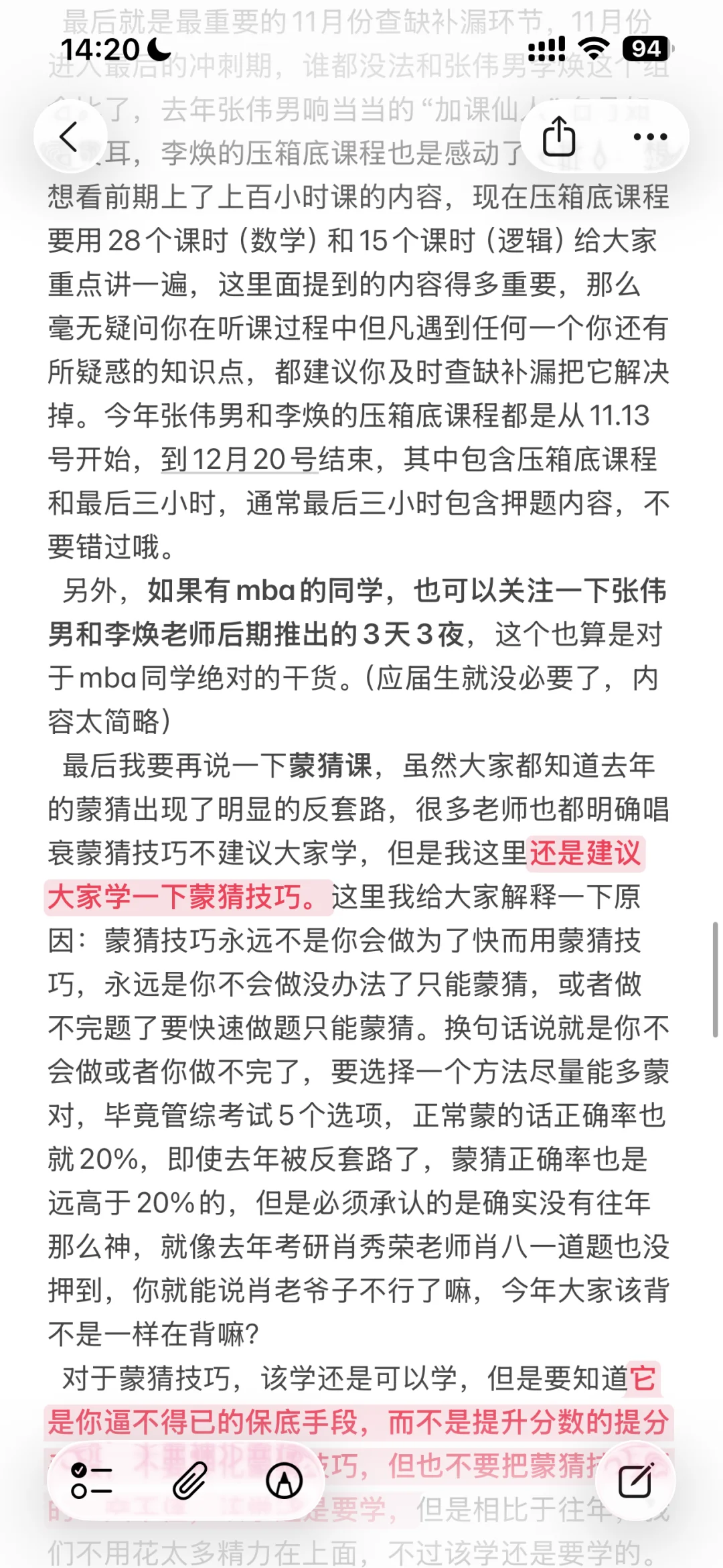 张伟男压箱底课程从11月13日开课,务必第一时间看完并结合模考查缺补漏。