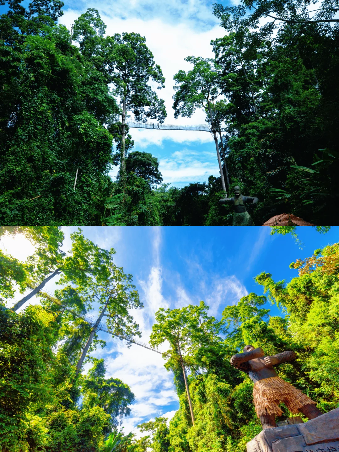 🌳重头戏必须是树冠走廊!高空的钢索栈道晃悠悠的,站稳后俯瞰整片绿海真的绝了。 望天树直插云霄,阳光透过枝叶洒下光斑,连蝴蝶都“停”在手上引路。早 9 点或下午 3 点后去人少,走廊中段开广角拍照巨出片!