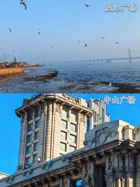 1️⃣ 星海广场:亚洲z大广场,喂海鸥看跨海大桥
