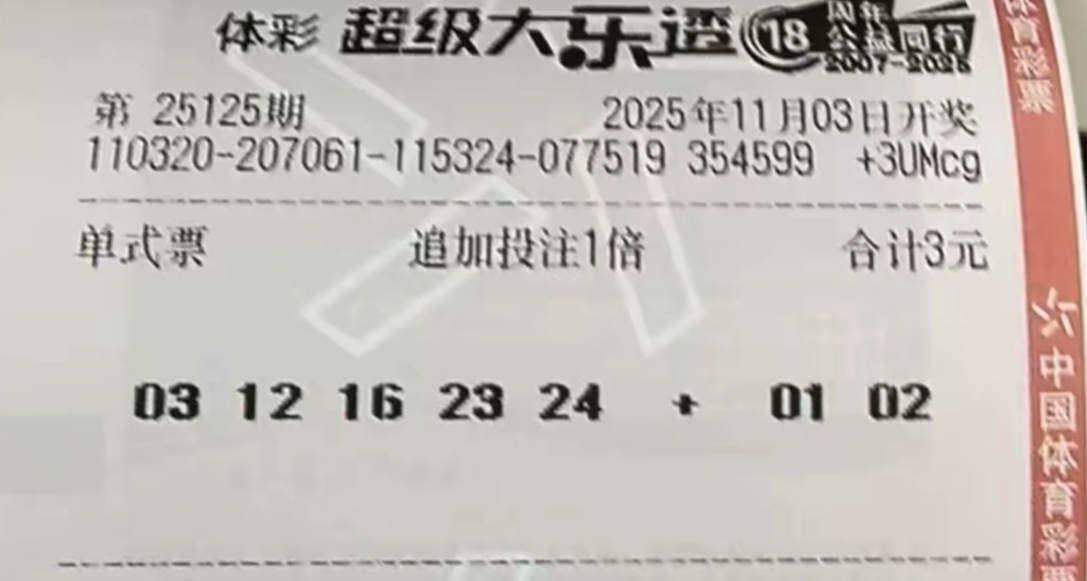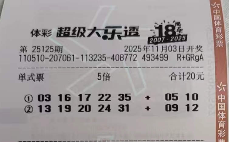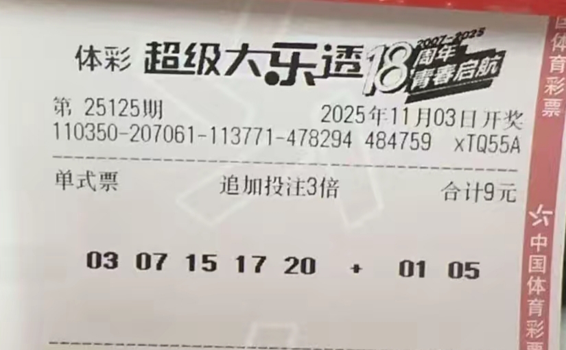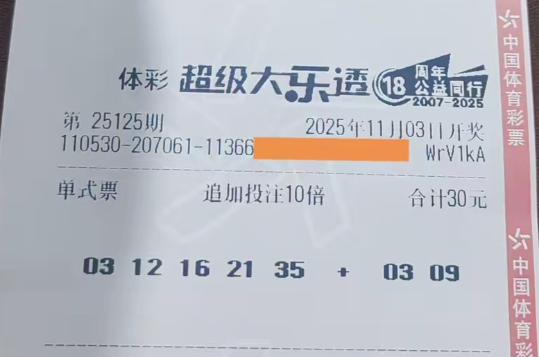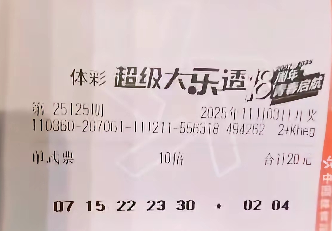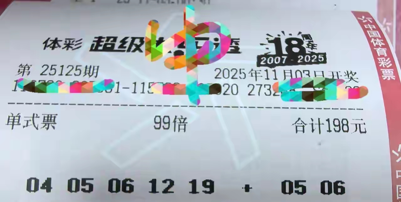 大乐透25125期晒票,单注99倍后区7+8组合,好运可期