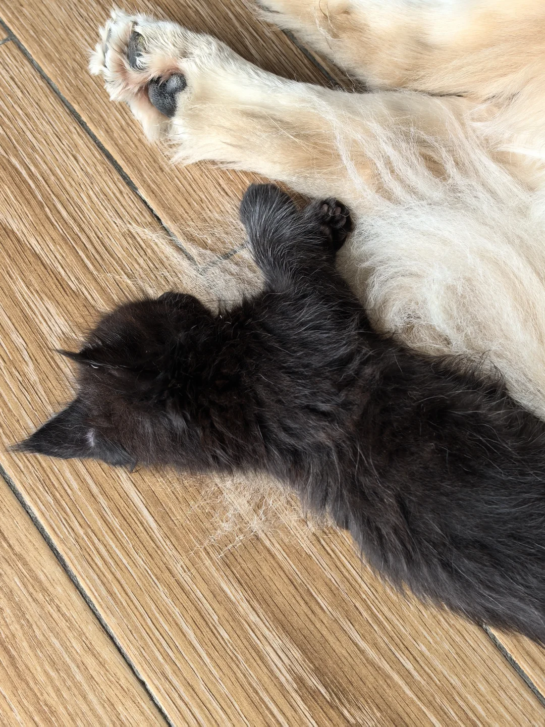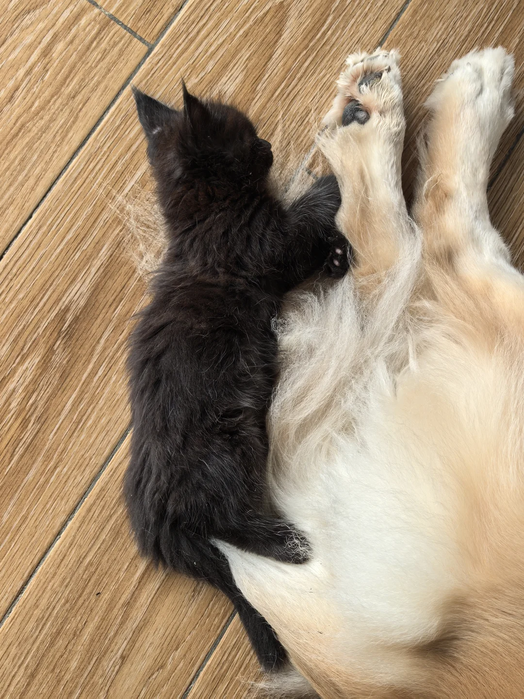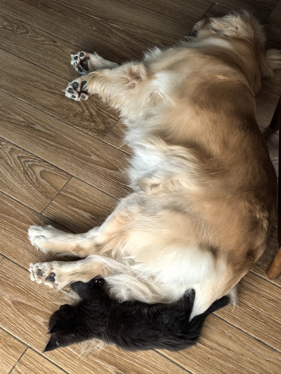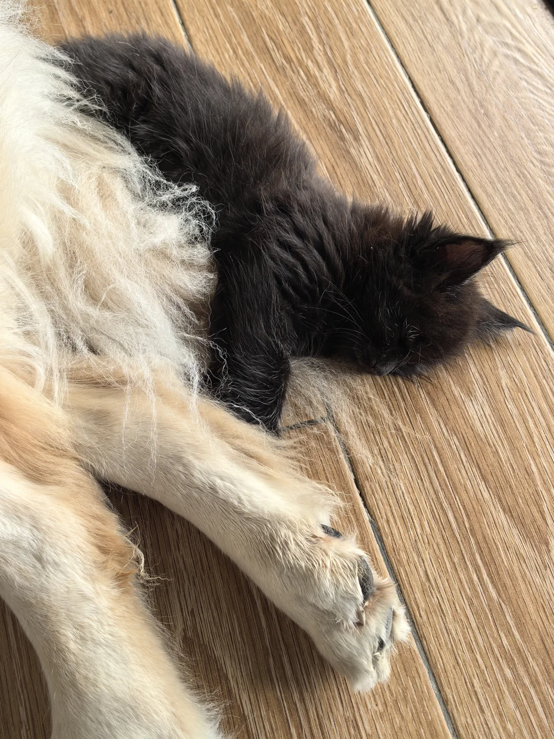 睡在狗尾巴上的猫