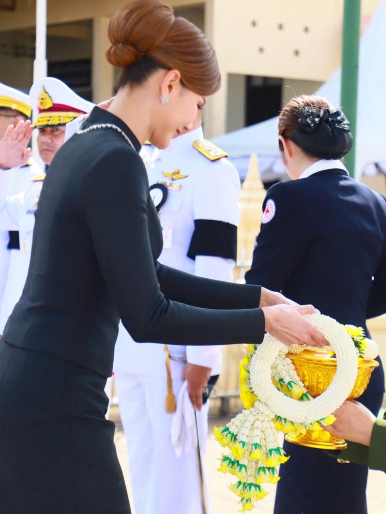 巴帕颂一袭黑丧服亮相,祭拜诗丽吉太后 国王陛下恩准委任,坤英·巴帕颂·瓦查拉哈泰帕少将为代表,前往董里府卡邦苏林寺(Wat Kapang Surin),敬献皇家卡提那袈裟。巴帕颂一袭黑丧服亮相,为诗丽吉太后祷告祈福。