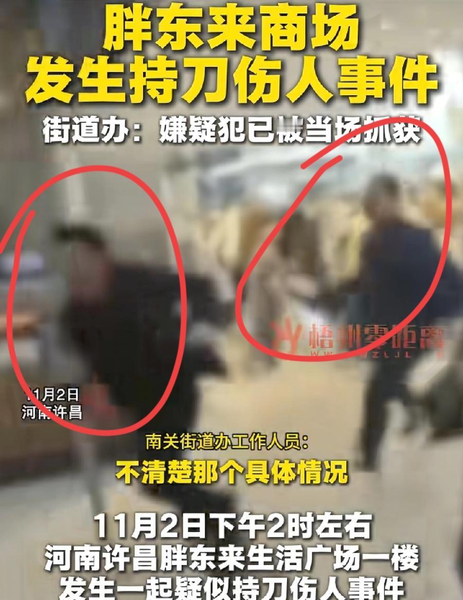 网传视频显示,一名蓝色上衣中年男子,拿着疑似菜刀,追一名黑色衣服男子,地板上有大片血迹,一名女子吓得尖叫,刚开始在服装店门口,不知道怎么就行凶了! 当地网友透露,有说因为代购起纠纷,那就与胖东来有关系了,有说原配撞见小三了,那与胖东来没关系,纯粹巧合而已!光天化日在商场里行凶,不是一般的小事!最后还是被胖东来员工制服了,为这位员工点赞!嫌犯已被抓获,看后续警方调查通报!