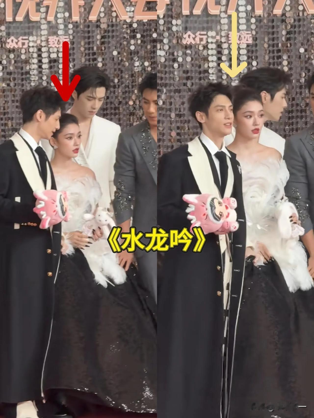 王鹤棣、张凌赫这俩真是男星红毯定海神针!超过一米八的男模身材配顶级神颜,合照完全不用女星下蹲[捂脸] 先是被两神颜惊艳,然后下一秒《水龙吟》剧组上场直接笑晕了,林允的裙子竟然被三个人抬着,合照环节还贴心下蹲,只为和罗云熙拍出最萌身高差。 哥脸还是帅的,但身高是真的有点虐了! 侯明昊、李兰迪出场也不像情侣,像姐妹,男生女相来形容他真的很准确啊。厚鞋底也是有女方高跟鞋高了! 倒是向涵之、黄奕实现了高跟鞋自由,《新闻女王》马国明也是穿着小香风紧身裤就上了,哥今晚有点靓啊。 你被谁惊艳到了呢?欢迎评论区留言。