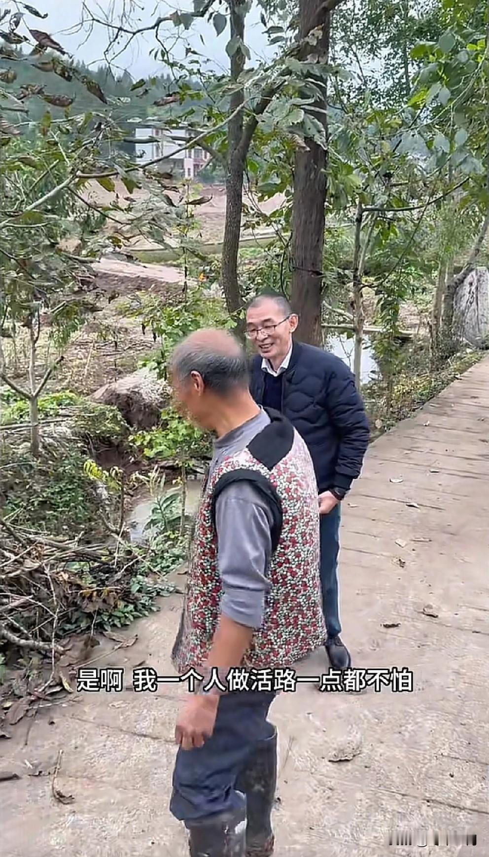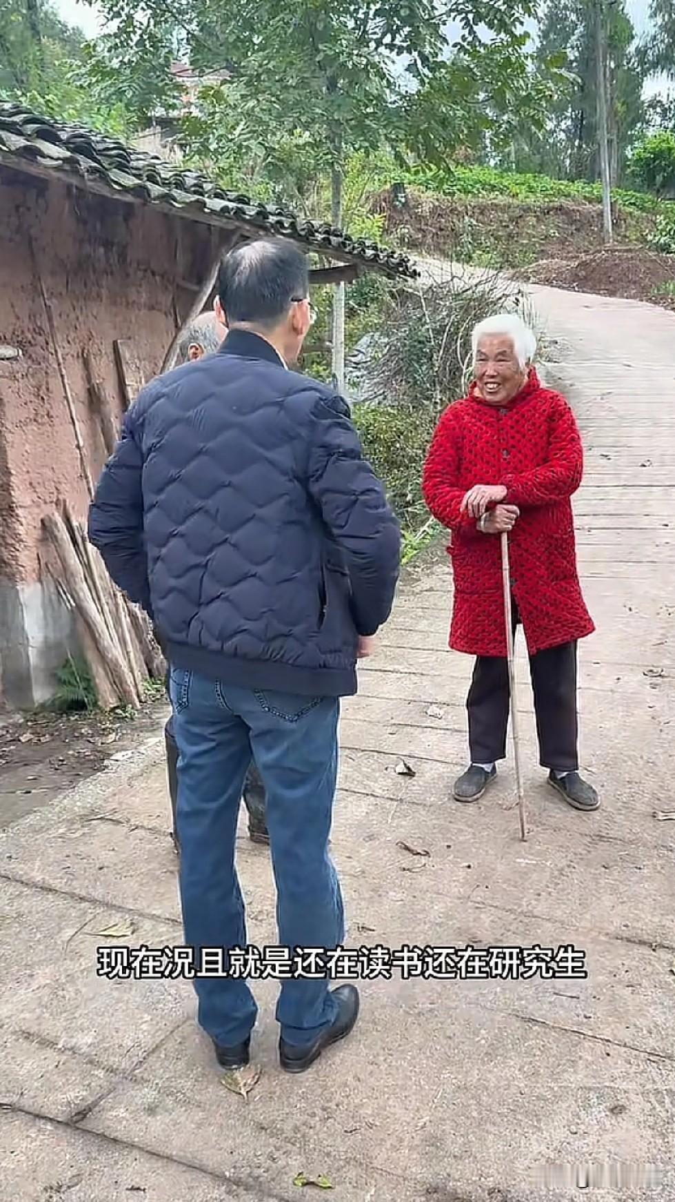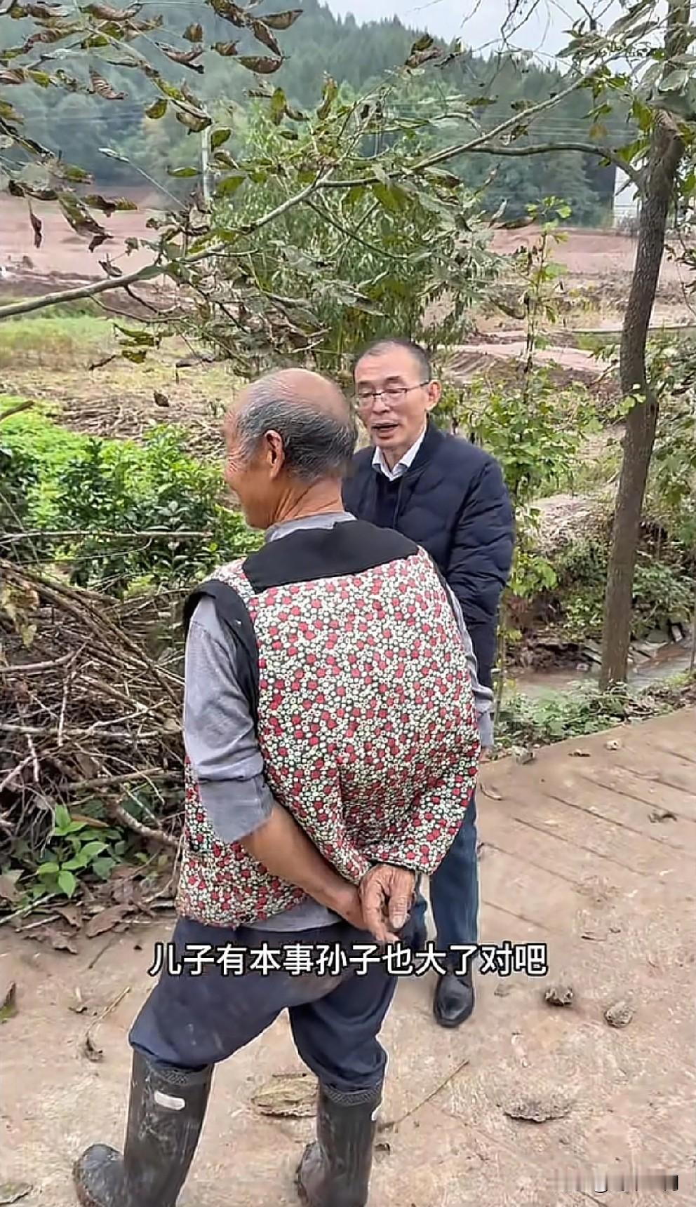 阡陌纵横,鸡犬相闻。谢浩男爸爸谢岳回到了四川仪陇的老家。谢浩男在老家已经是爷爷辈的人了,他爸谢岳跟一个老人家聊天,从言辞间知道这位老人家是谢浩男爸爸的堂哥,已经80岁了,每天劳作不休,老头挺乐呵,他说干活从来不找儿孙,都是自己干呢。 前两天,谢浩男妈妈直播,头一回听见她说四川话,这一次,谢爸放出视频作品,在老家,他也是说了乡音。这是个巧合。 挺搞笑的,是谢爸跟堂哥聊天,夸了堂哥的儿子和孙子,人家当然也要聊聊谢浩男了,谢爸连忙说儿子还在读书正在读研究生呢,对面的那位红衣服老太太这顿夸:儿子真优秀! 哎呦,谢爸听这词儿可美了。