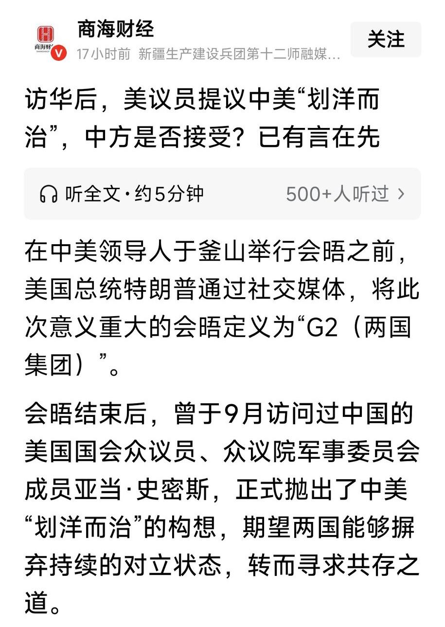 访华后,美议员提议中美“划洋而治”,中方是否接受?已有言在先!这想法简直就是。美国向来在国际事务中搞霸权那一套,之前就因“气球事件”上演政治闹剧,还想借此渲染“中国威胁论”,为中美战略谈判谋筹码。 中国一直坚持独立自主的和平外交政策,主张和平共处、合作共赢。所谓“划洋而治”是对国际秩序的破坏。中方早已表明态度,不会接受这种不合理的提议。在国际舞台上,中国坚定维护自身主权和发展利益,也致力于推动构建人类命运共同体,不会被美国这种不切实际的想法左右。