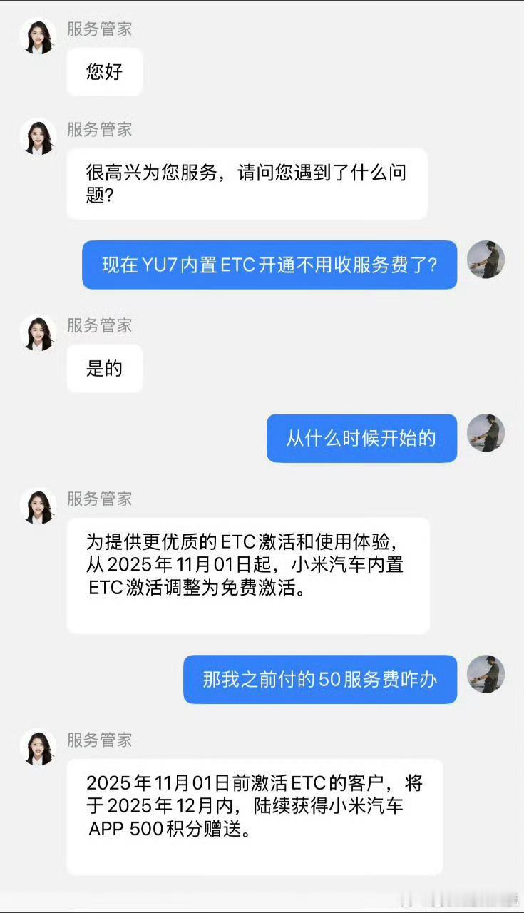 小米etc激活也免费了,之前交钱了的都通过积分返还。