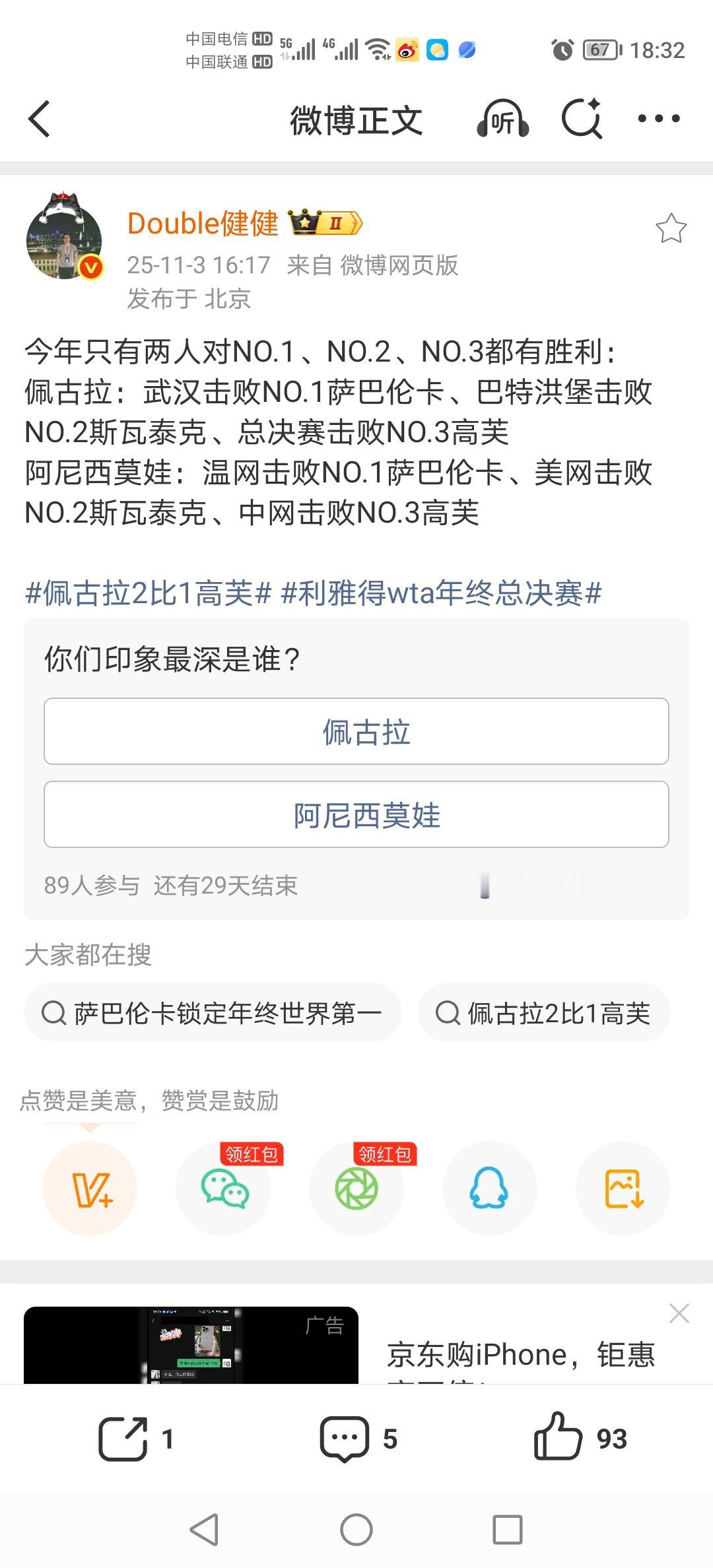 ATP就看谁能坐稳世界第一,WTA就看谁能击败世界前三。 萨巴伦卡本赛季已收获6