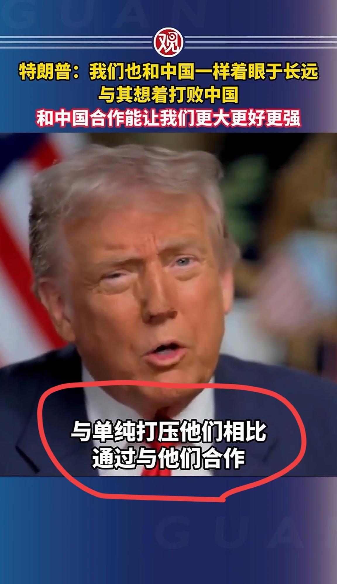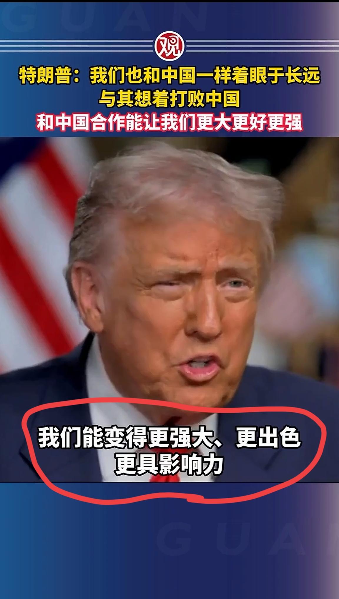 登顶热榜第一位, 川普公开喊话:与中国合作,能让美国更强大。 如果美国对我国放下霸权主义,两国走向合作。 整个世界都将受益,稳定全球和平,推动人类科技发展。 最大收益国,肯定是老美。 不得不说,此想法也非常聪明与明智。 因为我们民族的特征就决定了绝对不能用打压的方法相处。 我们这个民族,越是打压,越是凝聚力量,从而爆发出不可思议的向上力。 所以与中国平等合作,美国就能拥有最美好的未来。