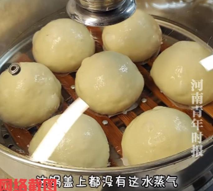 河南有女子在家蒸馒头吃。 可锅里的水蒸气容易把锅盖上的透视玻璃弄得看不清,如同