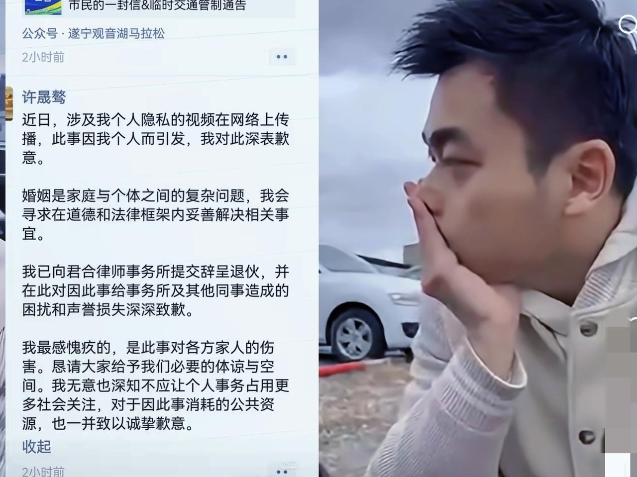 朋友说许晟骜写道歉信不是真心认错,直到律师网友点透才惊觉——这里面道道挺多,分明是给自己留足后手的“法律预案”! “各方家人”“公共资源”“律所同事”全道歉了个遍,偏偏漏了最该对不起的原配,这道歉就没啥诚意。网友说,离婚官司里,只要没亲口认出轨,原配想多要赔偿、多分财产,就少了关键证据,他这是提前堵死路呢!可有视频里的内容,算不算证据呢? 还有“婚姻是复杂问题”,过的不舒服可以提出离婚!不合适就分开呗直接谈嘛。退伙也是没办法吧,是赶紧和律所切割保律师证,再等等律所就该辞退,律所有影响会要名誉赔偿吗? 一次出轨,损失这么大,何必呢!