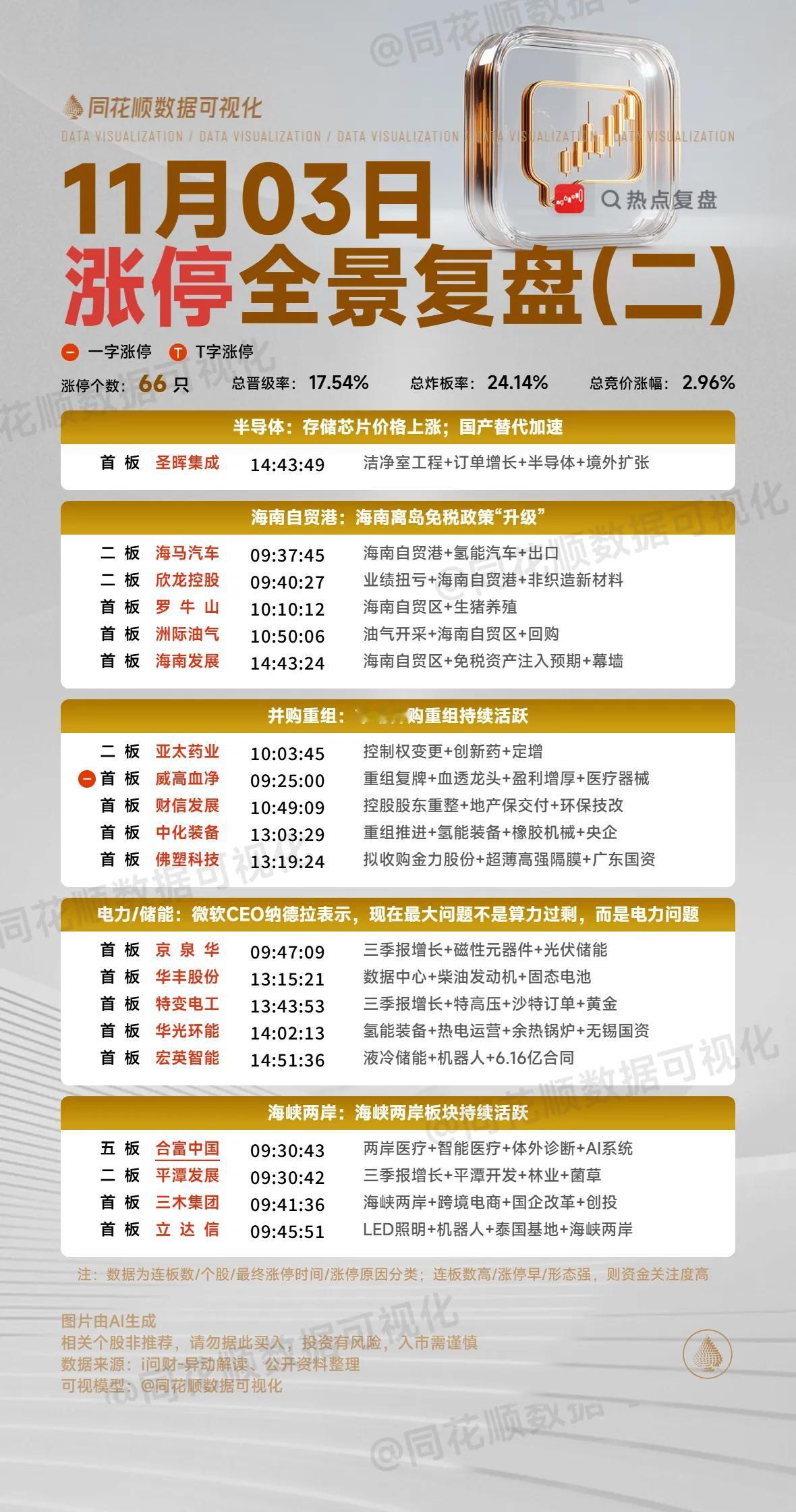 11月3日复盘:平潭发展、东方精工、神州信息、特变电工、三六零隔日走势的一些看法! 1、平潭发展(海峡两岸) 平潭竞价高开近9个点的表现就是明显要去挑战严重异动了,竞价3.47亿的成交额虽然量能比较大,但是这么大幅度的高开说明资金做多意愿是非常强烈的,所以开盘后它顶住分歧后迅速出现资金强势封板,而它封板成功后是带动了20cm的海峡走出强势冲高表现的! 盘后的龙虎榜是3日榜,买盘的5个席位除了深股通和西大街,其余3个席位都是明显今天介入的资金,华鑫近良路、新闸路和江苏路等游资席位都是大幅买入,卖盘跟周五的卖盘几乎一致,这表明今天市场的整体抛压并不大,所以平潭这个缩量涨停确实非常漂亮,这样的走势就是模仿曾经的首开了,隔日得预期就非常高了,所以之后平潭只要竞价依然强势,资金接力的欲望就依然会比较强烈,对于这只个股,何时竞价开始偏弱的情况下可能就会是结束之时! 2、东方精工(核电) 周末核电方向是有非常大的利好的,所以开盘整个核电方向是明显高开,东方作为周五的炸板股,竞价4个多点的高开是直接突破了周五的涨停价的,抢筹形态非常明显,所以开盘顶住分歧后是迅速出现资金做多拉升上板的,但是这只个股毕竟周五是炸板的,所以板上分歧非常大,之后回落到均线位置反复震荡,直到午后才有资金强势拉升封板,虽然在板上依然有资金抢跑,好在最终还是封死涨停! 盘后的龙虎榜成都系净买入1个亿,新闸路虽然买入7千万,但是走掉了1.5亿筹码,其余买盘都是东财,卖盘吴宁西路卖出1个亿,机构卖出超6千万,其余席位多为做T资金,整体来说,东方这个榜单只能算一般,但是东方的辨识度是非常高的,今天虽然是烂板,隔日一旦有资金引导,它走出冲高的概率还是很大的,但是从今天整个核电的表现看,其实并不算好特别强,隔日一旦几只前排无法持续一字板,板块分歧或许会更大,那么对于东方来说,就要去找冲高的卖点了,反之,如果核电方向前排依然非常强势,那么东方或许会有惊喜! 3、神州信息(量子科技) 神州今天其实挺坑人的,早盘板块个股和板块都偏弱的情绪下,很多资金都是早盘割肉走人的,但是它在板块整体不行的情况下却是出现资金强势做多拉升红盘,并且短时间走出冲板动能,但是这只个股毕竟周五是炸板兑现的,所以板上抛压非常大,资金几次强封失败后,走出了明显回落在高位支撑放量的走势,直到临近午盘才有资金承接顺利封死涨停,走出了一个比较强势的反包涨停! 盘后的龙虎榜成都系、城管希、江苏路和章盟主4个活跃游资席位入场接力,卖盘的抛压并不大,这算是全明星的龙虎榜了,但是最近这种榜单反而很难走出来,因为这些资金大多数是一夜情游资,隔日一旦开盘不是特别强势的情况下,资金抢跑的概率还是非常大的,再加上量子科技方向并没有个股跟随,所以隔日神州早盘如果不出现迅速走强信号的话,就要及时兑现走人了,毕竟对于神州来说,这几天它的启动时机都是优先于板块的,所以对于它来说,板块反而没有多大的参考价值! 4、特变电工(光伏) 特变10月29日涨停炸板后,出现了连续两天调整的走势,早盘光伏方向有明显修复,特变是快速走出冲高表现,午后在板块大盘共振上行时出现资金强势封板,并且一次性封死涨停,走出了一个比较强势的放量涨停形态! 特变算是光伏方向明显的大盘股,而且今天板块核心隆基、阳光都有共振上行,整个光伏板块的趋势是非常不错的,隔日早盘走出持续性的概率就比较大,所以特变隔日早盘的表现还是比较值得期待的,一旦光伏方向整体有持续性,特变走出趋势中军表现的概率就非常大,如果板块出现大涨爆发,它或许还可能走出连板,但是它的连板接力要慎重,毕竟今天市场是明显缩量的,它这种大盘股想要走出连板,整个市场至少要有明显的放量! 5、三六零(AI应用) 早盘竞价AI应用方向是非常强势的,粤传媒开出一字板,欢瑞也是大幅高开秒板,所以作为中军的三六零开盘顶住分歧狗走出了不错的趋势拉升,虽然并没有资金去强势封板,但是回落后的整体承接还是非常不错的,尾盘最终还出现了一波拉升站上了分时均线! 盘后的龙虎榜是3日榜,沪股通继续大幅买入,几个量化也是持续引导,桑田路也继续加仓,卖盘作手新一卖出了部分筹码,这个榜单算是明显的量化引导榜单,最近市场这样的大盘股有量化和机构引导其实是非常不错的,至少比游资靠谱,在考虑到整个AI应用方向走出了持续性,那么三六零接下来继续走出趋势表现就比较值得关注了! 文中的内容仅为分享和交流,不作为实际操作建议!