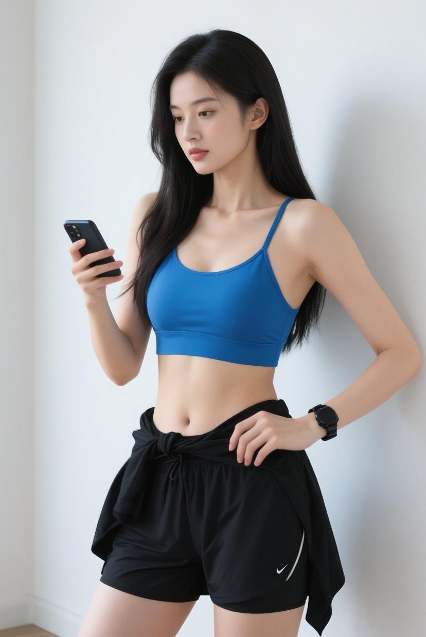 都市时尚少女,黑白条纹衬衫搭配黑色高腰裤,走在繁华街头,尽显优雅与自信。