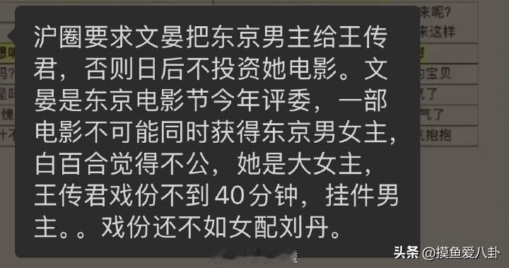 王传君你糊涂呀! 你看给白百合气成什么样了 白百合发文“还能这样操作”疑似是因为王传君要拿影帝了! 白百合和王传君一起演的电影《春树》正在东京电影节参展,白百合也去了东京,但她突然发文,IP也变成了河北。 白百合本来是想靠这部电影拿最佳女主的,不想王传君先拿了最佳男主,一部电影不会同时出最佳男女主,也就意味着她拿不到最佳女主了! 更令她生气的是这部电影是大女主戏,虽然王传君是男主但其实戏份不多,甚至没有女二的戏份多。 她作为货真价实的女主空手而归,怎能不气! 王传君有演技,又凭“直言不喜欢”王家卫作品大获路人好感,现在整这么一出,多此一举!