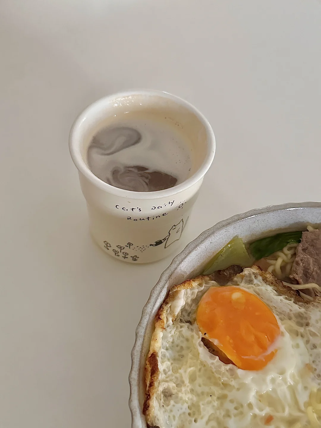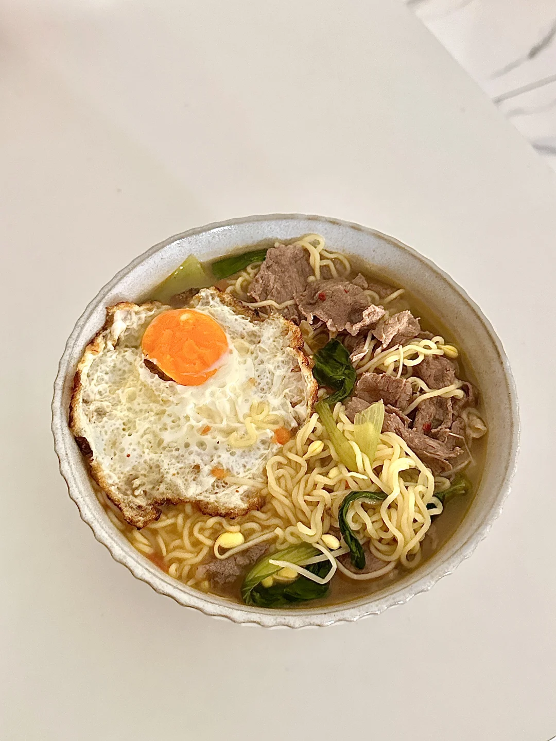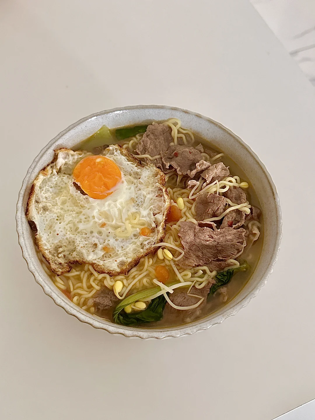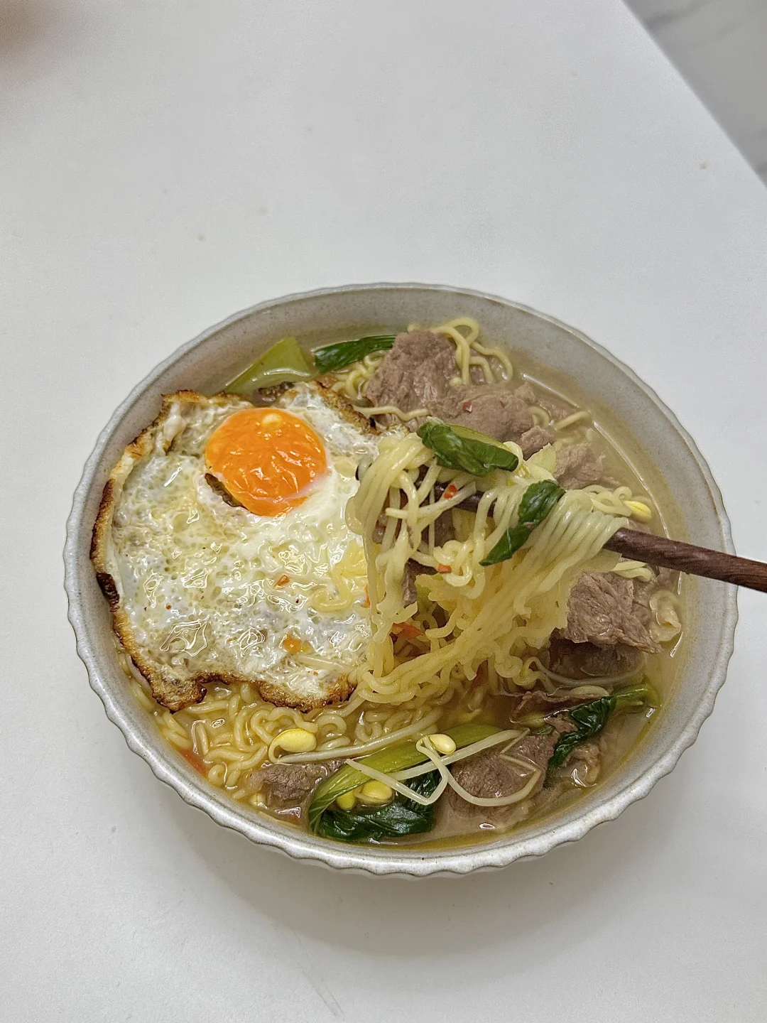 因为想吃😋 所以早上吃番茄牛肉面 🍜汤汁浓郁 味道超好吃 一碗下肚暖乎乎 配上美式 我这减脂餐吃的太美滋滋啦! ~ 👩🏻🍳做法: 1️⃣牛肉片放料酒焯水备用 2️⃣油热放西红柿和一勺盐炒出汁 放豆芽翻炒之后 加入适量清水烧开 3️⃣水开加生抽 黑胡椒 鸡精调味 再放泡面(也可以放泡面材料包调味) 4️⃣最后放牛肉 青菜和煎蛋煮3分钟即可 喜欢吃泡面的姐妹可以试试煮 比泡的好吃n倍! 好好吃饭 健康减脂 我要想想明天吃什么🤔