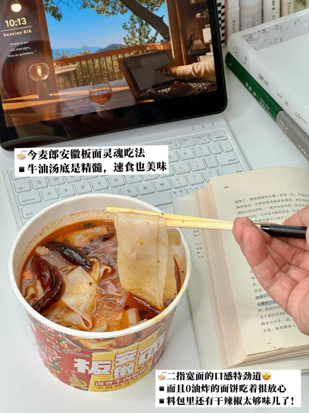 ▪️晚上饿了打开一部电影,配上我最爱的今麦郎安徽板面,一碗牛油味浓郁的板面下肚很劲道。我喜欢吃是因为它是二指宽面,0油炸吃着很放心,口感爽滑劲道。而且它料包有三颗辣椒,四种口味可选,根据味蕾自由搭配配菜。