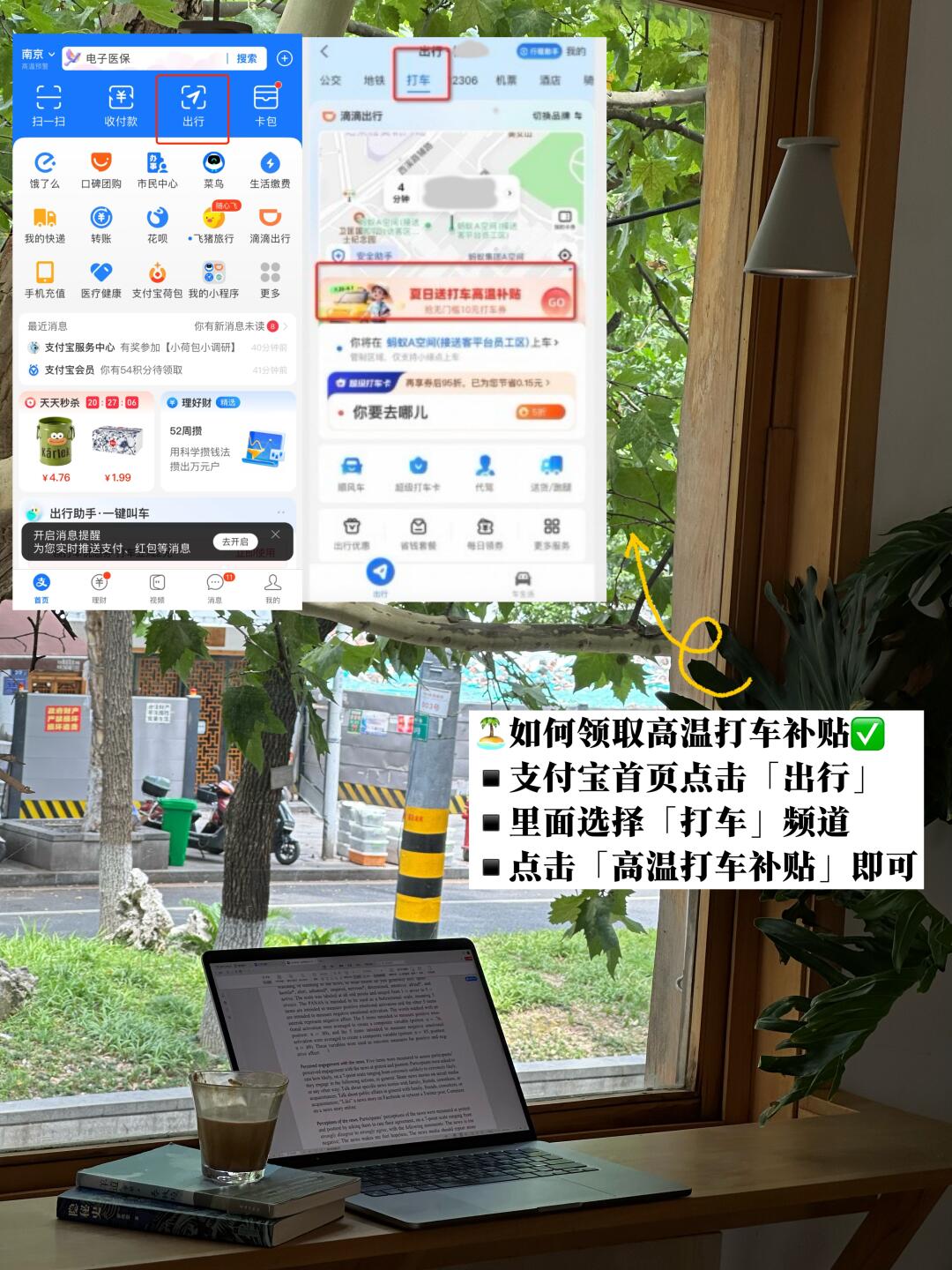 ▪️我大学旅行了十几个城市,但夏天很热我更爱支付宝打车,清凉还省时间,最近支付宝还推出高温打车补贴活动: