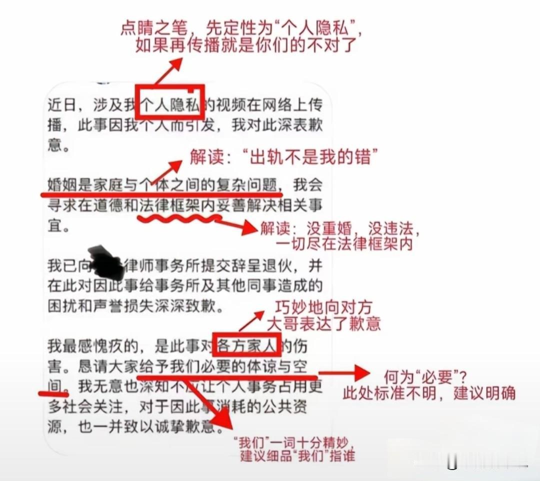 带小三产检的许某骜辞职了,说好听点是辞职,实际上就是被妻子的叔叔踢了!但是从他的道歉信里可以看出他依然很高傲,他说会寻求在道德和法律的框架内妥善解决这件事,拜托,已经不道德和违法了,还寻求道德和法律的框架?最后他说因为这件事对“各方家人”都感到很愧疚,咱就说“各方家人”是哪些家人?自己的家人?妻子的家人?还是小三的家人?对所有人都愧疚就是只字不提对妻子的愧疚,看得出许某骜还是非常不服气啊!