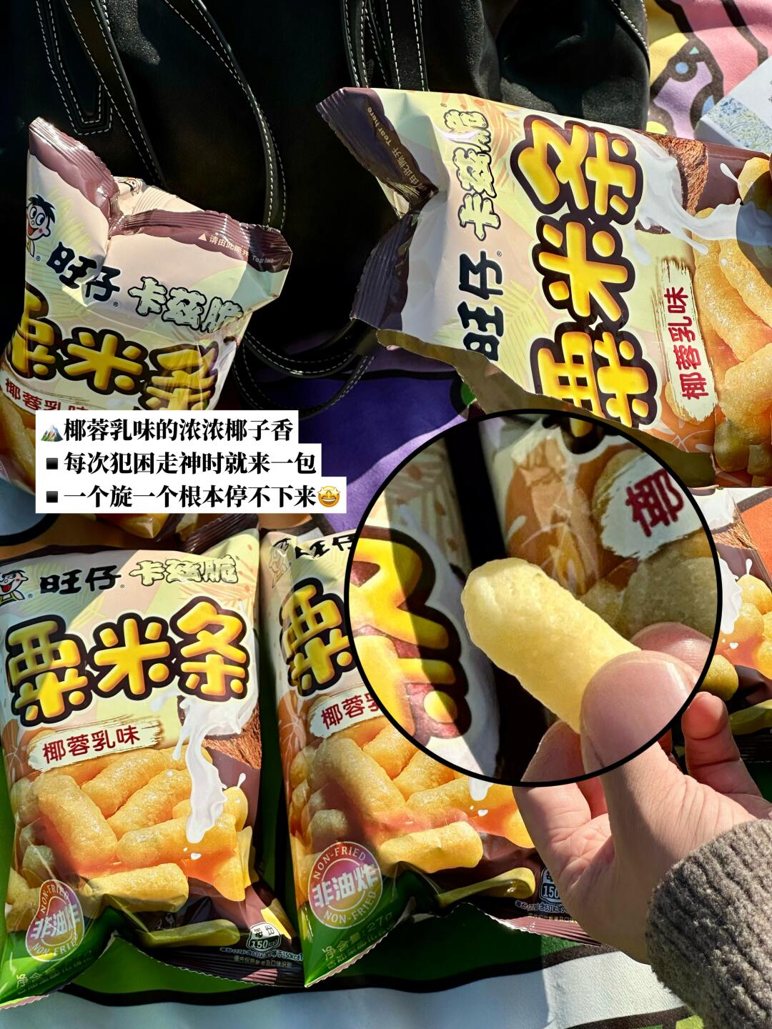 ▪️⼩包装适合一个人办公或学习吃,解压还充电。卡兹脆椰蓉乳味粟⽶条是我童年回忆!原先是浪味仙的粟⽶条,只在旺旺⼤礼包⾥⼀起卖,现在终于单独买到了!又可以幸福的享受童年回忆了!