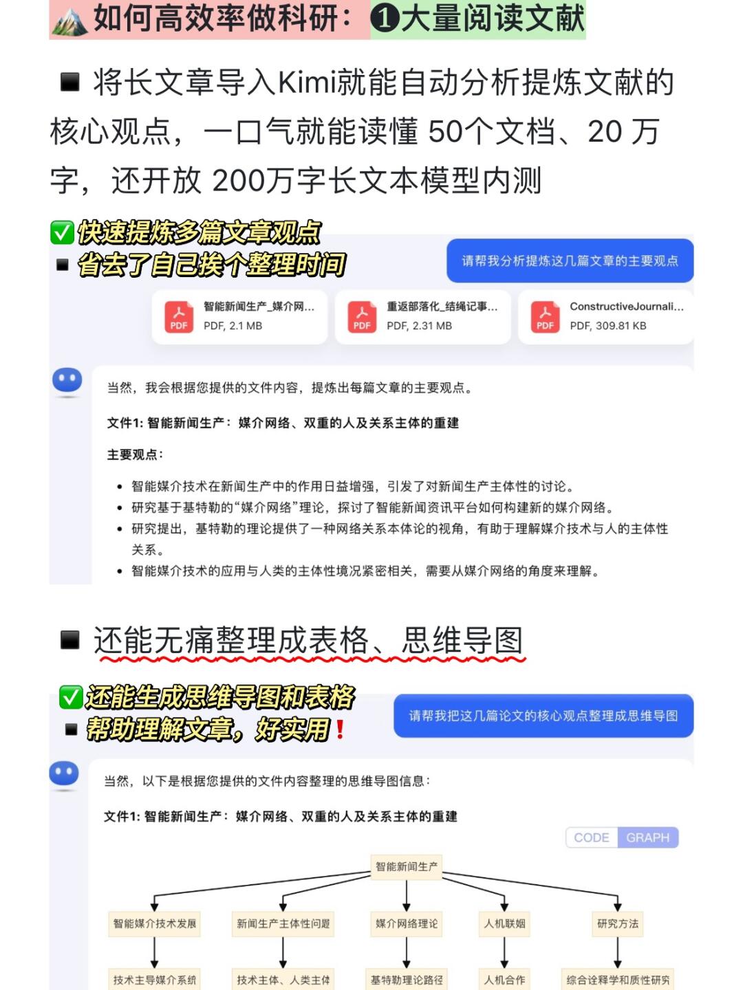 ①阅读文献:将长文导入Kimi自动分析提炼核心观点,一口气就能读懂 50个文档、20 万字,还开放 200万字长文本模型内测,还能无痛整理成表格、思维导图