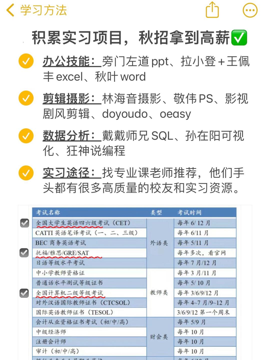 ④想工作:大一学技能、大二参加比赛学精技能,大三积累实习经验