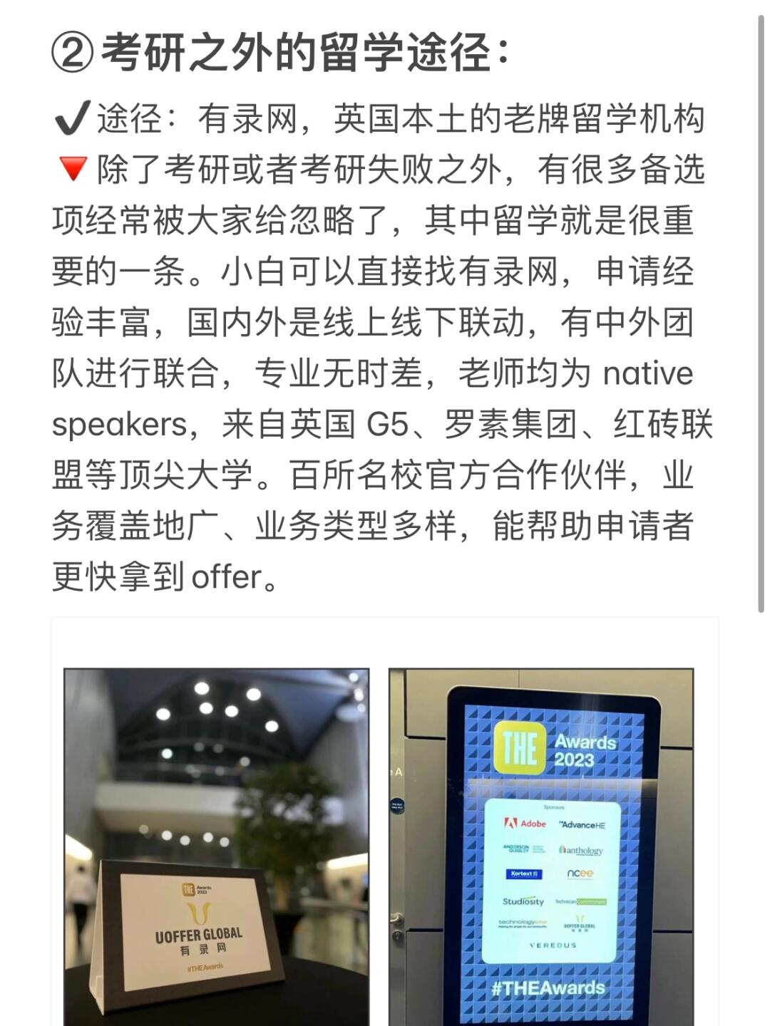小白可冲国外本土机构,比如申请英联邦地区(英国澳洲相关新加坡等地),就是很香的选择。作为英国本土老牌留学机构,他们申请经验丰富,与上百所名校有深度合作关系。而且不光能帮助申请研究生,本科、预科、博士等都可申请,甚至入学后各种申诉、论文辅导、学术辅导、名校科研等都有专业团队来加持。对于考研失败同学来说,现在选择留学真的不迟,很多地区都可以想申请后补语言成绩。