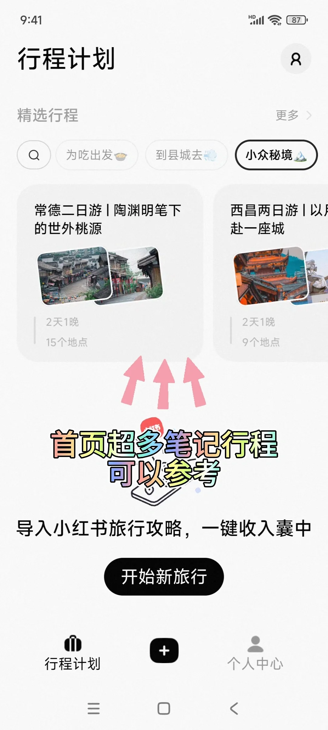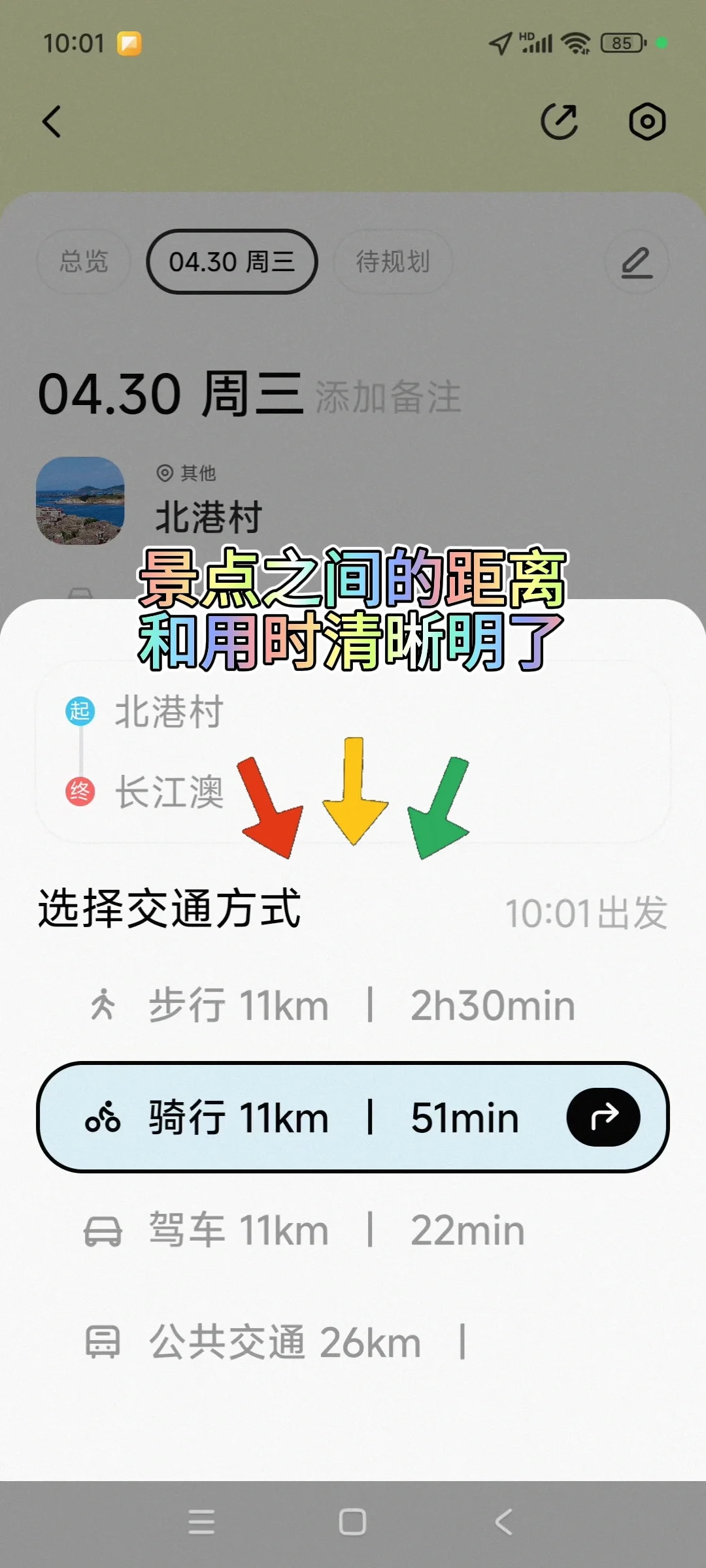 ⚠️出门旅行,我会用规划路线,首页有超多精选笔记,搜索想去的地方,可以查看和参考精选行程,景点之间的距离和用时清晰明了,可以选择合适的交通方式