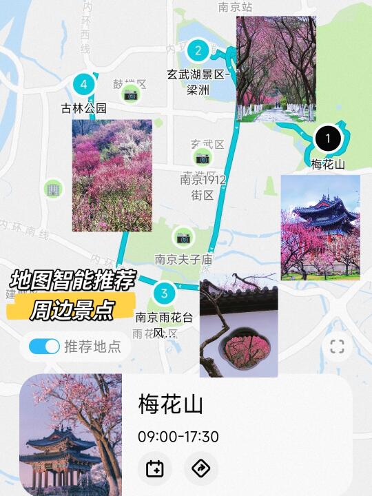 如果不想自己做攻略,可以直接复制我这篇链接,在上会自动生成攻略,查看景点之间的距离和时间很方便,还可以智能推荐周边景点和美食,太适合懒人出游啦