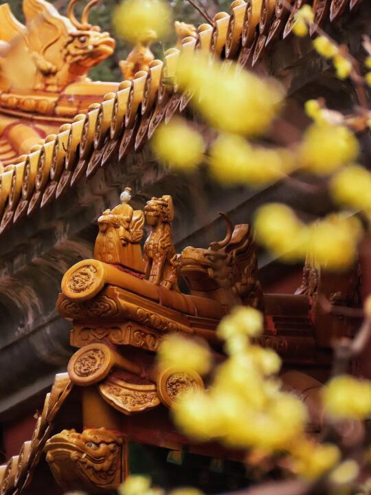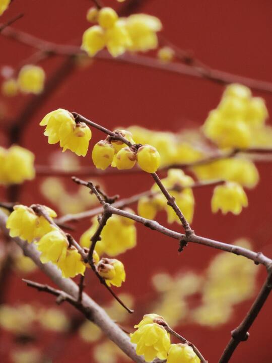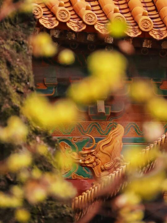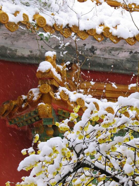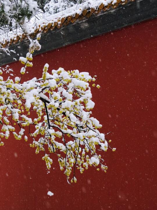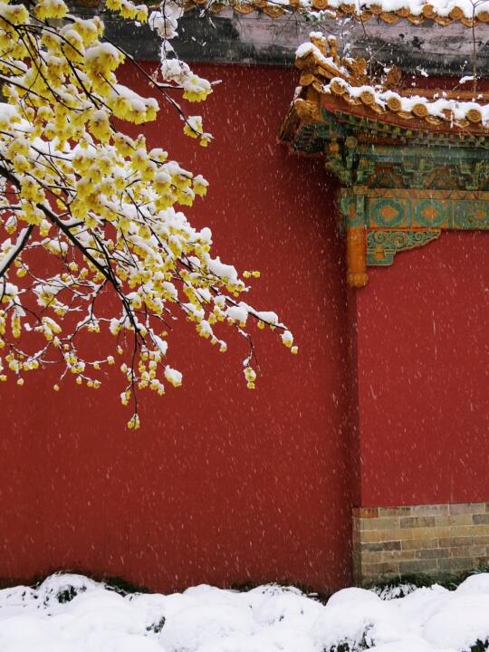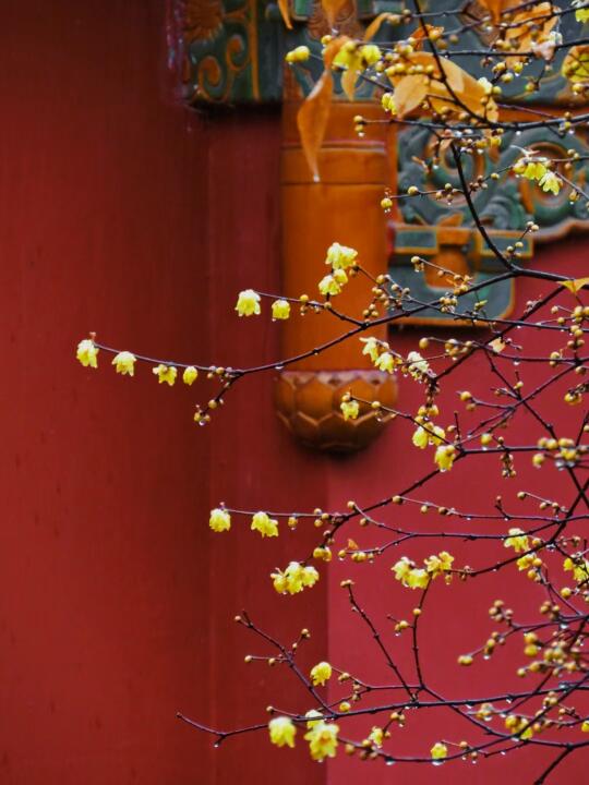 红宫墙和蜡梅黄的配色,无论晴天、雨天、下雪天都美哭😭