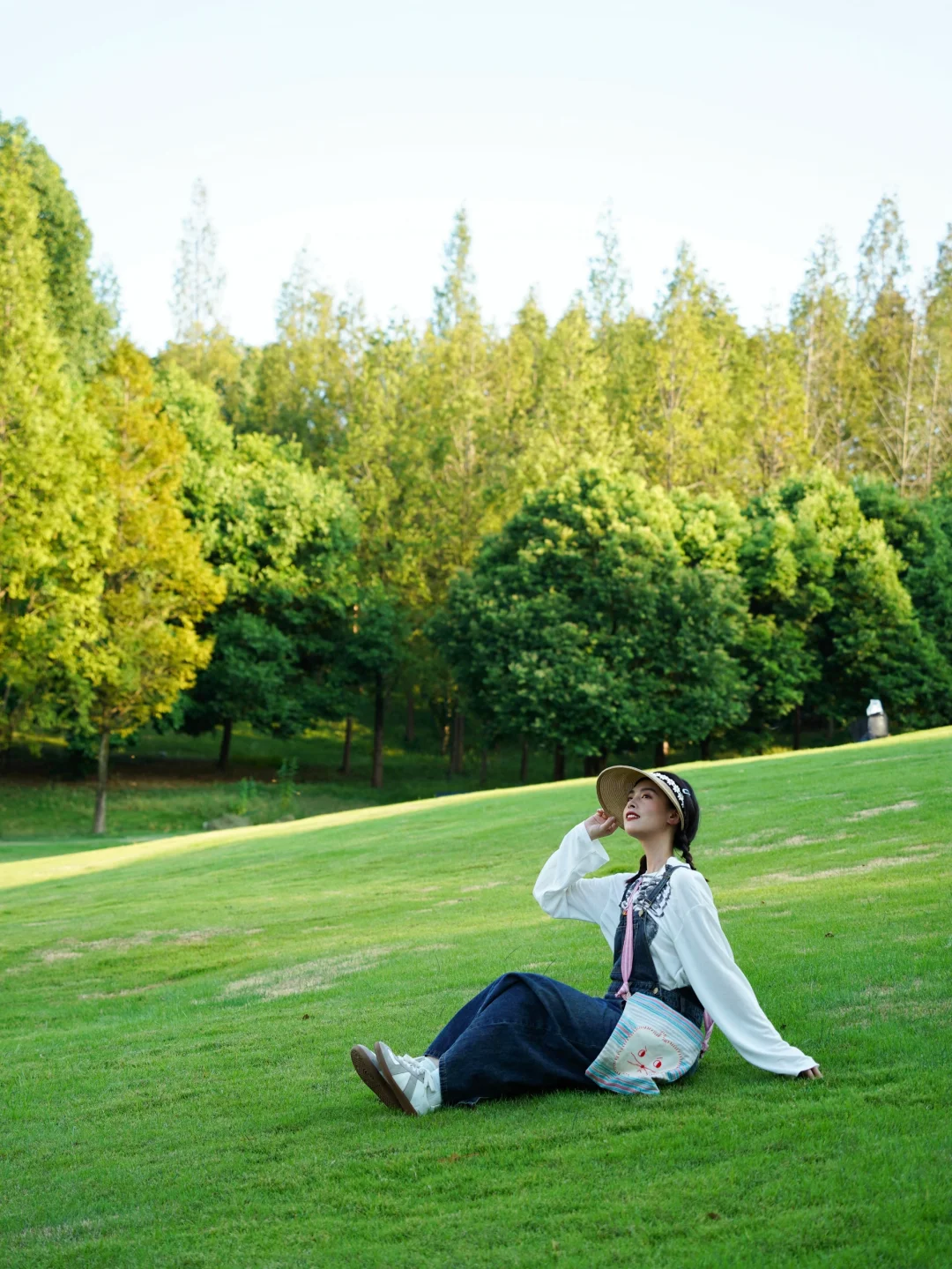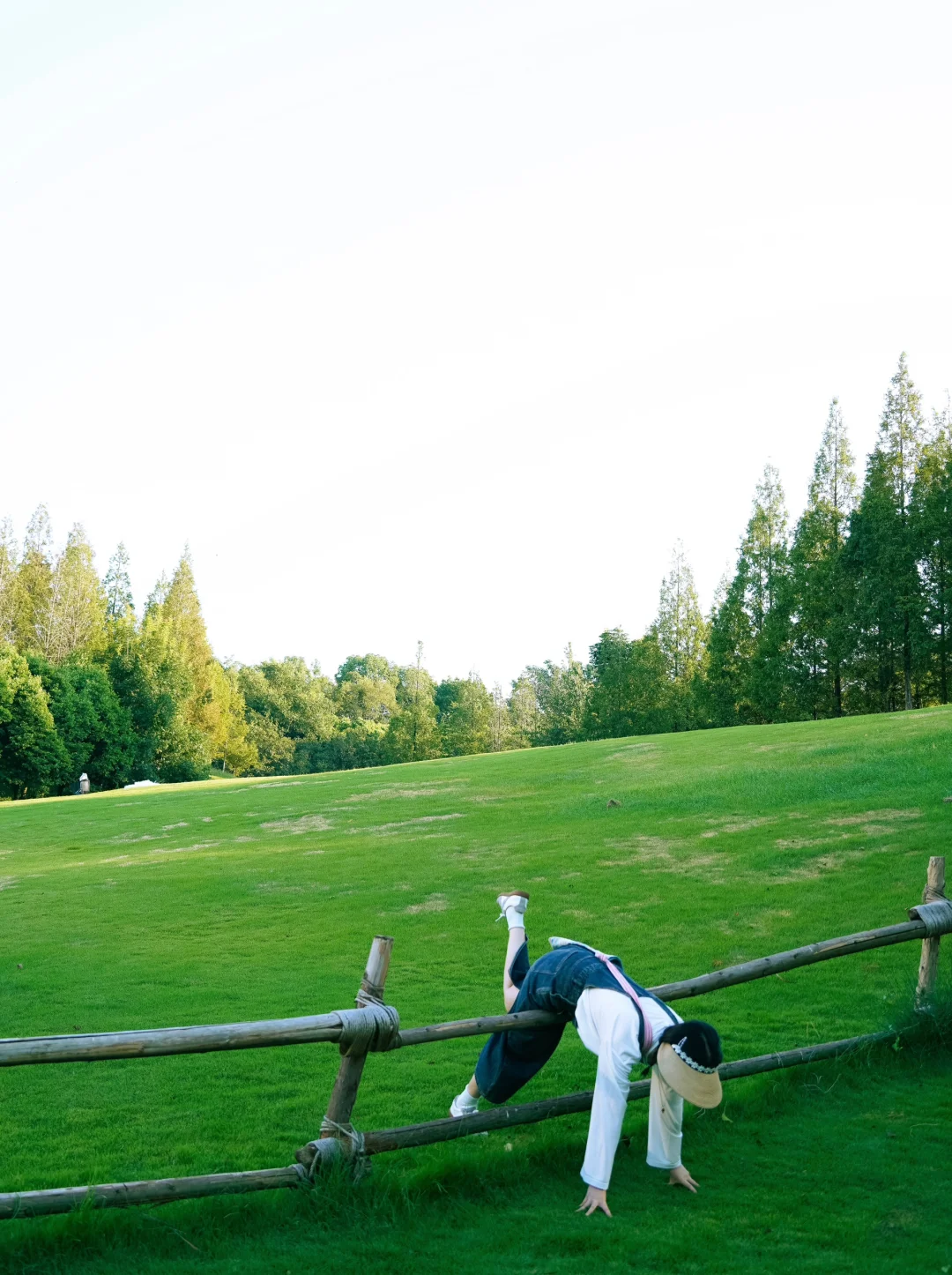 真的在成都!市区出发20min到达!! 这个森林公园也太太太好拍了!🍃 朋友圈还以为我去了新疆… 几乎没什么人~整个环境举起手机随便拍都好好看📷 绿草坪🍃、蓝天白云☁️、木道、森林小屋、秋千……每一处都美的恰到好处~ -