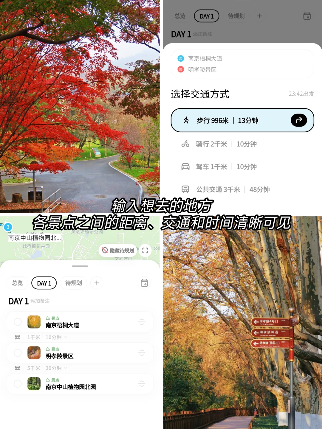 🔸地图形式一目了然,输入想去的地方,各景点之间的距离和交通方式清晰可见