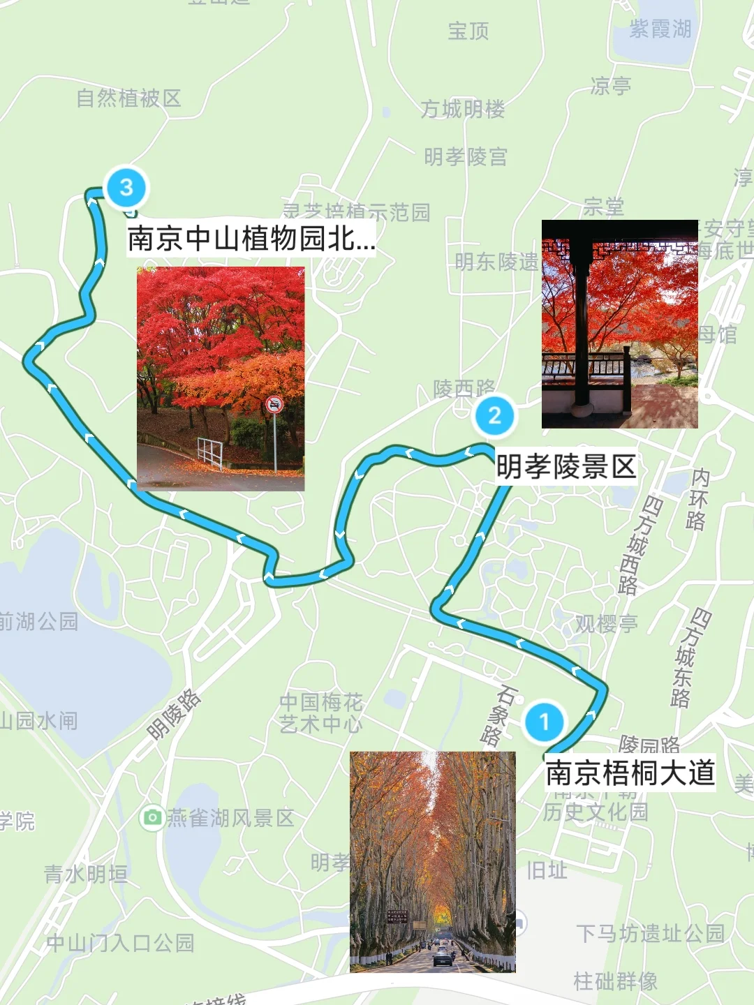 苜蓿园地铁站1号口出来,可以梧桐大道➡️明孝陵胭脂雪➡️中山植物园,一条线路游玩
