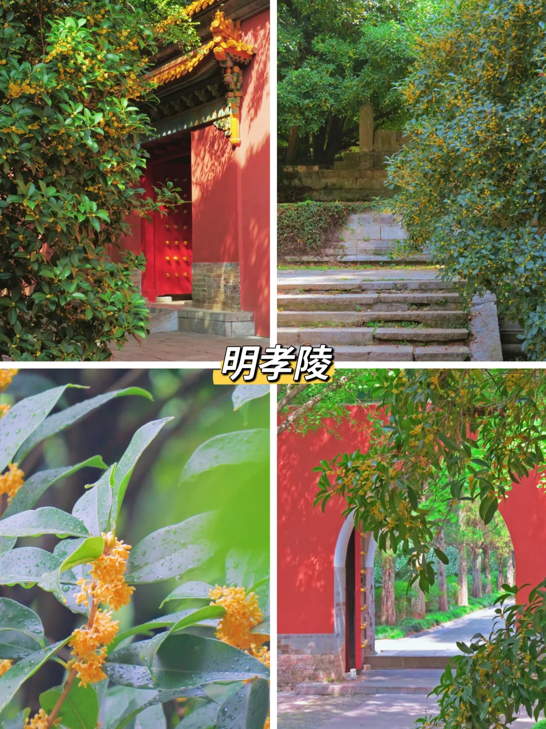 桂花最多的地方在文武方门孝陵内,这里的桂花树冠大,花开的非常密集,绝美
