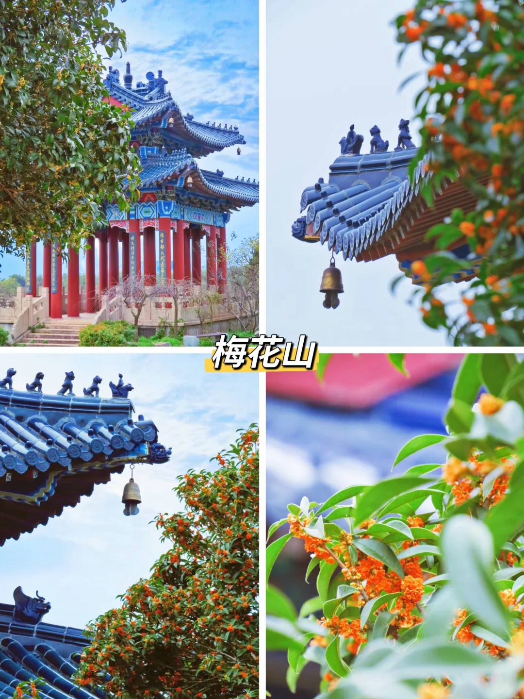 梅花山在明孝陵景区内,桂花主要集中在山顶博爱阁旁,虽然只有几棵桂花树,有博爱阁做背景,拍照非常有意境