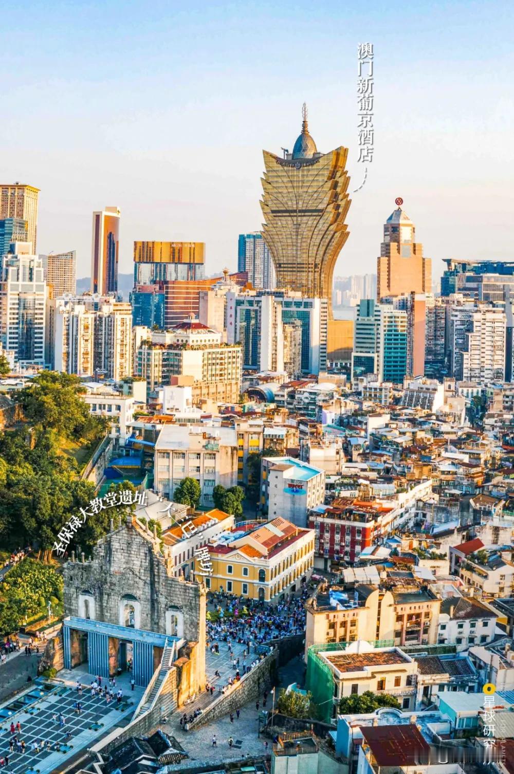 澳门只有这么大点! 澳门特别行政区由澳门半岛和氹仔、路环二岛以及路氹城(路氹填海区)组成,最初只是一个不足3平方公里的小渔村,之后一直填海造陆,到1912年也只有11.6平方公里,现在也才扩充到了33.3平方公里,扩充了超10倍! 现在澳门人口只有68.64万人,只有我们一个县的人口规模,出口加工业、博彩旅游业、金融服务业、建筑地产业是其经济的四大支柱,虽然人少地狭,但GDP总量已经达到了3660亿元人民币,人均GDP高达53.35万,妥妥的中国第一! 澳门被葡萄牙占领了446年,保留了大量的中西合璧的建筑,历史城区也是世界遗产,风格独特! 最后,不禁要问,如果没有葡萄牙殖民澳门,那么现在的澳门还能发展这么好吗? 澳门 科普一下