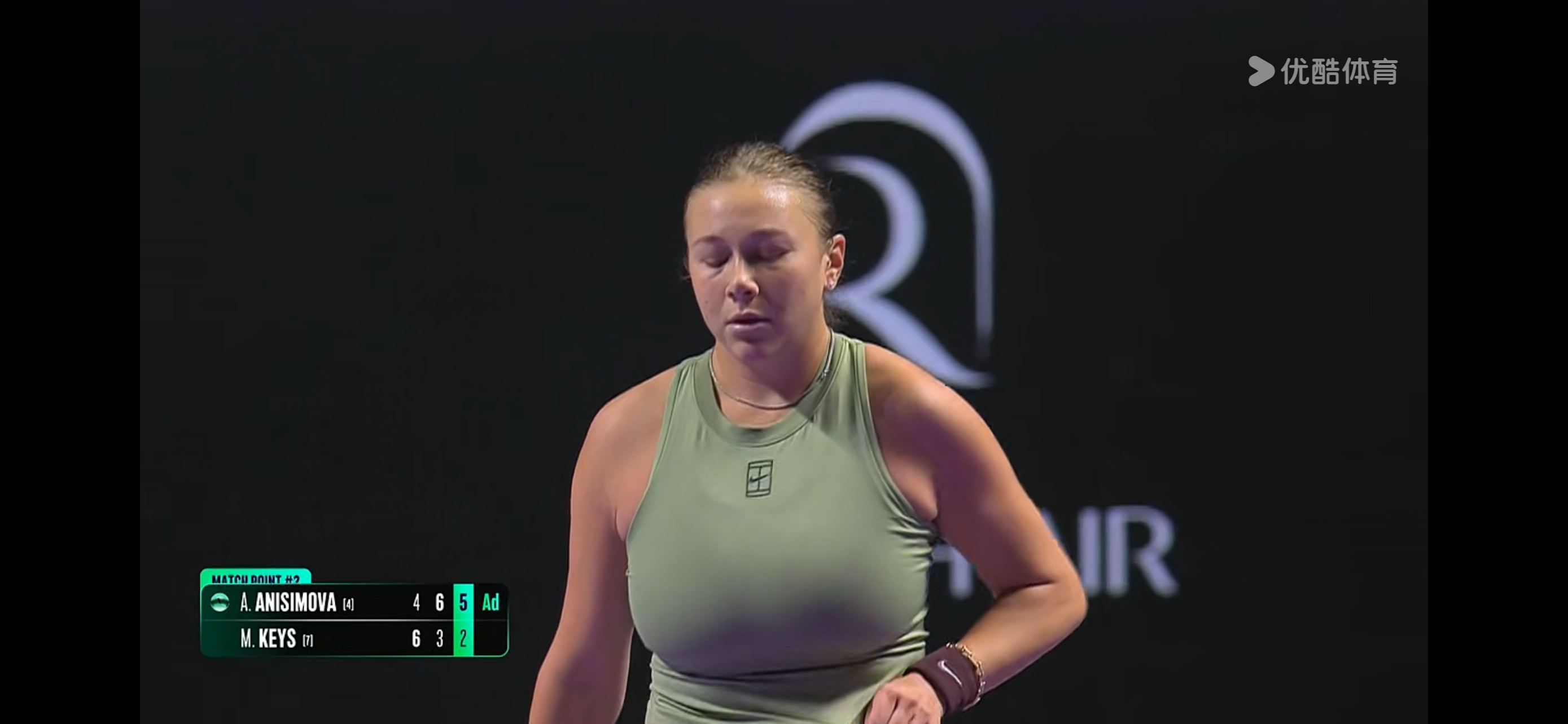 阿尼西莫娃在首盘告负,第二盘1-3落后下连赢7局后,最终以4-6、6-3、6-2逆转凯斯,将在决胜轮与斯维亚泰克交手,直接争夺四强席位。