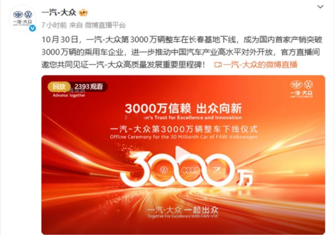 一汽-大众刚在长春整了个大动静——第3000万辆整车下线了!好家伙,这数字看着都吓人,从1991年建厂到现在34年,愣是攒出了这么厚的家底。 要我说,这德国人和咱中国人的合作是真搞出名堂来了。当年在长春建厂的时候谁想得到能有今天?现在人家直接把研发、制造、质检这些核心部门都敞开给人看,这底气不是一般的足。 最实在的是他们搞的那个“3000万用户感恩礼”,直接抽幸运车主白开一年新车。要我说这营销玩得高明,既赚了口碑又拉近了和消费者的距离。想想也是,三千万车主的选择,这比啥广告都管用。 这些年一汽-大众确实挺稳的,不管市场怎么变,人家销量就是硬气。现在新能源车打得这么凶,他们还能保持这个势头,说明确实有两把刷子。不过话说回来,能做到这个份上,光靠吃老本肯定不行,还得是产品和服务真的过关。 看着这个3000万的数字,再想想咱们自己的国产车,啥时候也能搞出这个动静来?现在国产车是越做越好了,但要走的路还长着呢。一汽-大众这个标杆立在这儿,对咱们整个汽车行业都是个激励。 要我说啊,下一个3000万应该用不了34年。现在中国汽车市场这么大,新能源又给了大家新机会。不过能不能成,还得看各家真本事了。