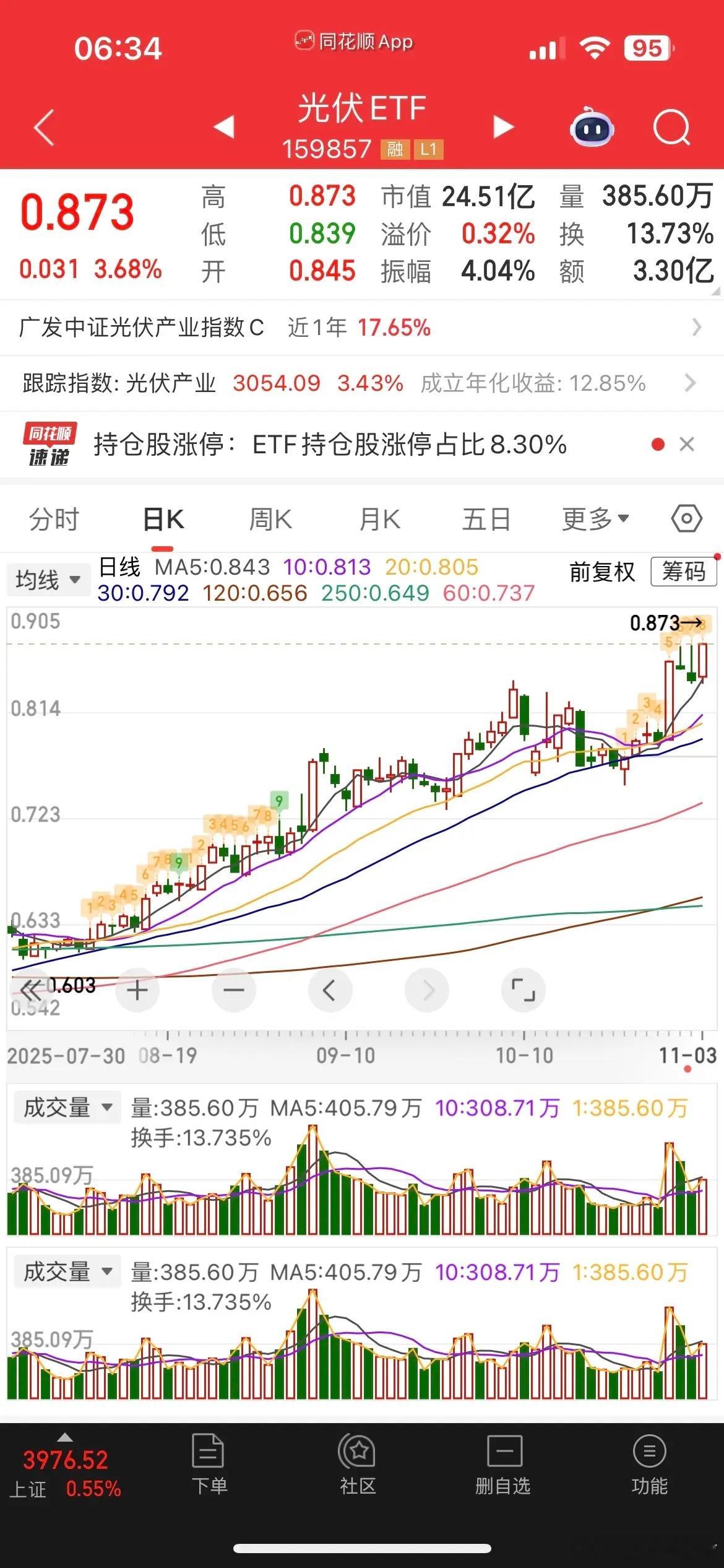 昨天市场探底回升,三大指数全线翻红,并均站上了10日均线,今天看能不能一举突破5日线,打开向上空间,而昨天内资跑了300多亿,两市缩量2000多亿,目前总成交额维持在2.1万出头,量能还可以,板块上昨天老登银行、煤炭、三桶油等权重红利品种再度走强,而券商、保险、有色等权重继续调整,小登这边半导体、固态电池调整、CPO探底回升,Al应用端和光伏延续强势,现在看老登和小登板块内部分化严重,资金高低切迹象明显,目前表现最好的是红利和微盘股,最弱的是双创,今天看风格能不能有所切换,银行红利熄火,半导体科技崛起!